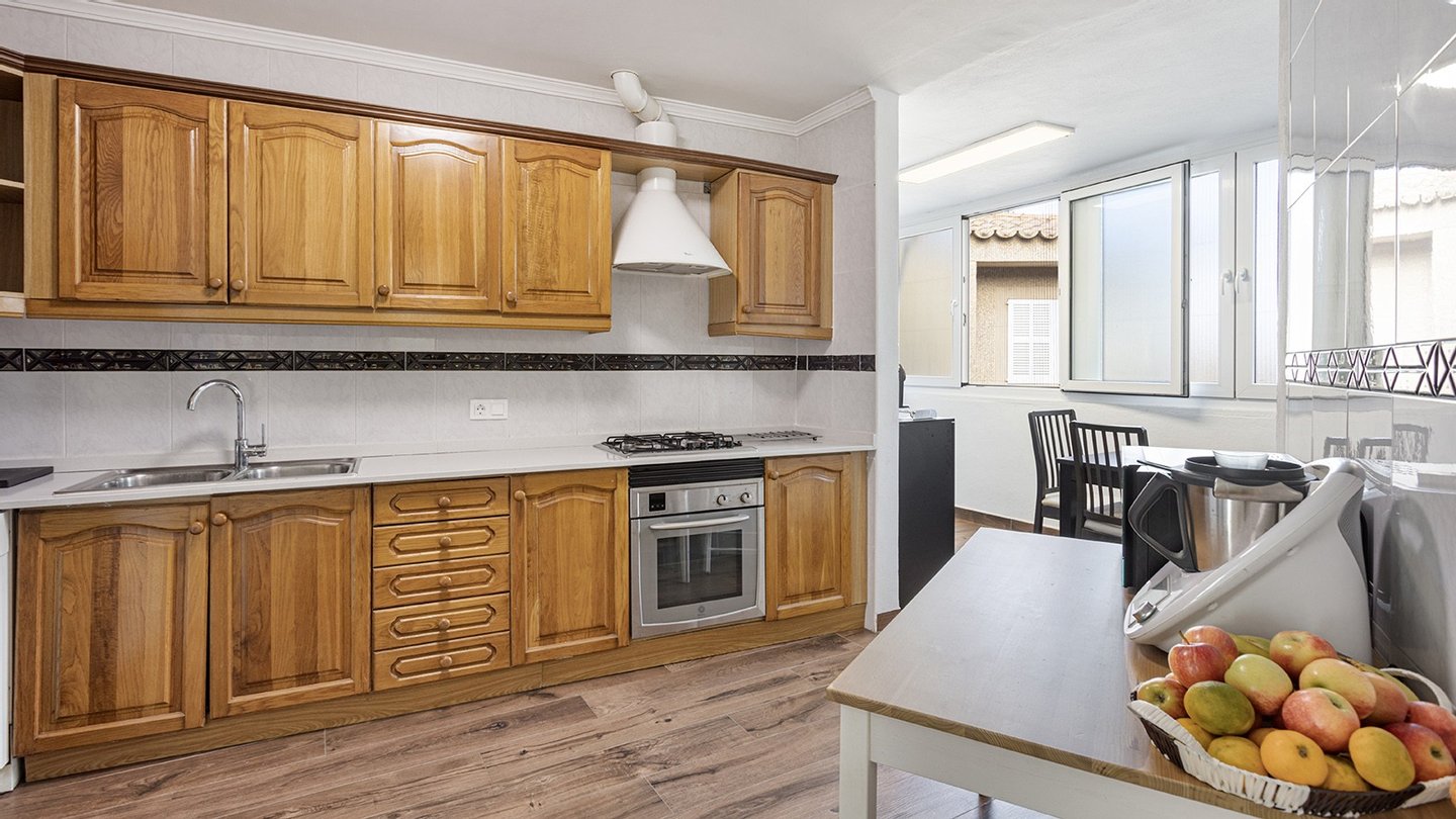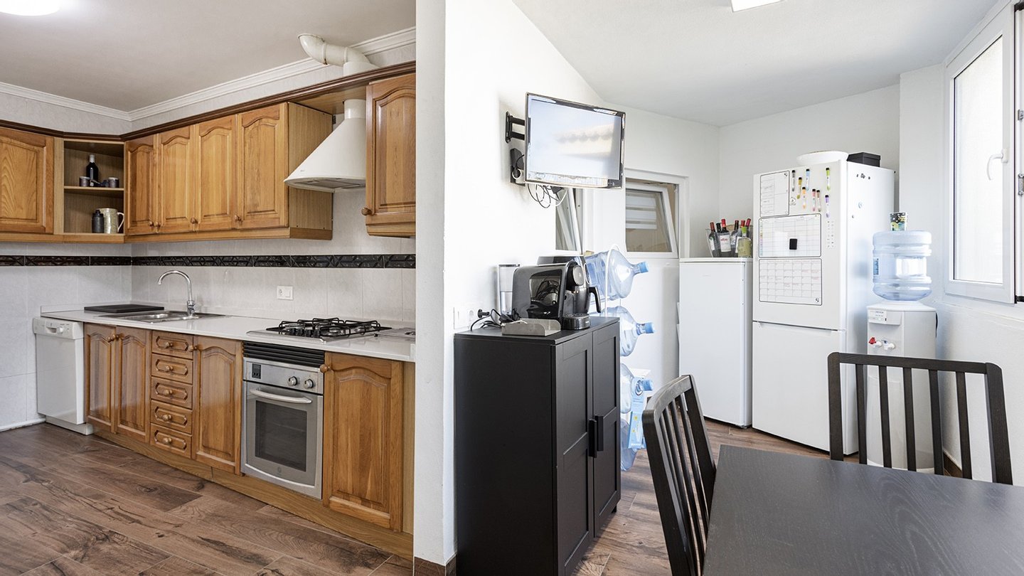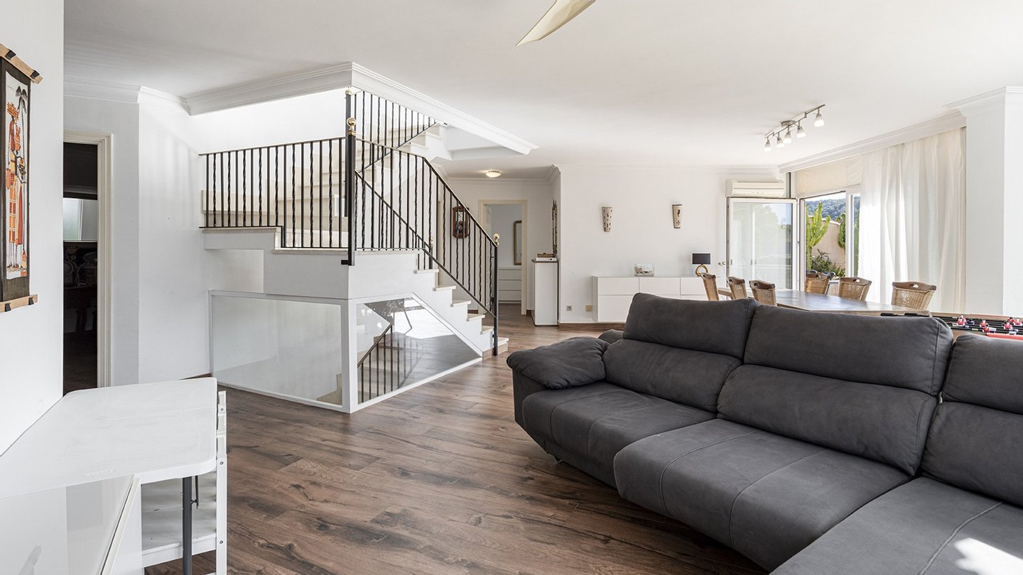 Das im Jahr 2024 renovierte Reihenhaus hat eine Wohnfläche von ca. 245 m2. Es ist wie folgt aufgeteilt: Im Erdgeschoss befindet sich ein Eingangsbereich mit Stauraum. Von hier führt eine Treppe in den ersten Stock, wo sich ein helles Wohn-Esszimmer mit großen Fenstern und Zugang zu einem großen Balkon befindet. Die separate, voll ausgestattete Küche verfügt hochwertige Elektrogeräte und es gibt es einen separaten Abstellraum und einen Hauswirtschaftsraum. Außerdem gibt es 4 Schlafzimmer mit Einbauschränken und 2 Badezimmer, eines davon en-suite. Die großzügig ausgebaute Dachterrasse ist über eine Treppe im Innenbereich des Hauses zugänglich und bietet einen herrlichen Blick auf die Berge und das Dorf. Zur Ausstattung gehören: Klimaanlage w/k, Warmwasser über Boiler, Einbauschränken, doppelt verglaste Aluminiumfenster und Jalousien.