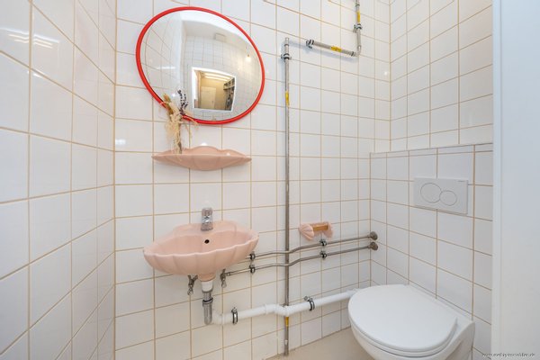 Das neuwertige Mitarbeiterbad ist modern ausgestattet und verfügt über ein WC, eine bodentiefe Regendusche sowie über einen Anschluss für Waschmaschine und Trockner. So können Arbeitskleidung und Textilien bequem direkt vor Ort gereinigt werden – ein echter Vorteil im Betrieb. Für Mitarbeiter auch prima als Umkleide geeignet.
