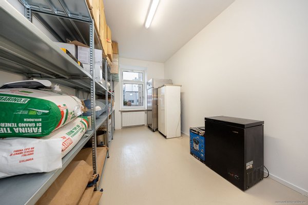 Der Lagerraum ist großzügig geschnitten, rechteckig und ebenfalls mit einem Fenster ausgestattet. Dadurch eignet er sich hervorragend für die strukturierte Lagerung von Vorräten, Geräten oder Materialien sowie als Produktions- oder Vorbereitungsraum.