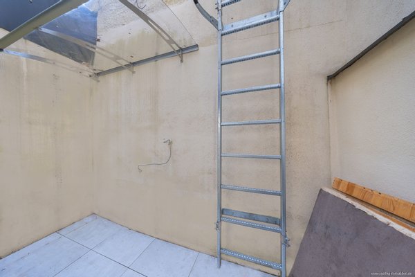 Ein weiterer, flexibel nutzbarer Raum befindet sich im Souterrain. Er bietet viel Platz und eignet sich je nach Bedarf als großzügige Küche, Vorbereitungsraum oder Lagerfläche. Besonders hervorzuheben ist der Zugang zur nach Westen ausgerichteten, überdachten Terrasse, die zudem über eine Feuerleiter verfügt und als uneinsehbarer Pausenort für die Mitarbeiter geeignet ist.