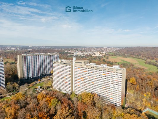 Die Wohnstadt Asemwald befindet sich zwischen Stuttgart-Degerloch und Stuttgart-Birkach.