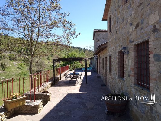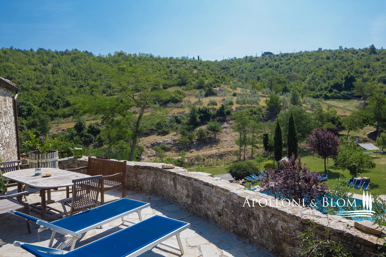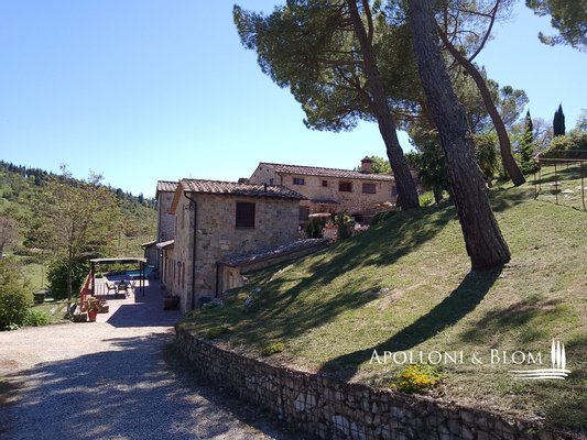 Renoviertes Bauernhaus aus Stein aus dem 15. Jahrhundert mit Pool, Nebengebäude und Garten zu verkaufen in Castellina in Chianti, Siena. An der alten Römerstraße, die Siena mit Florenz verbindet, hat dieser Ort mehr als fünf Jahrhunderte lang das Leben und die Geschichten der lokalen Gemeinschaft beherbergt, von der Wanderschäferei über die christlichen Pilger bis hin zu den alten Bauern des Chianti Classico, die sich wegen des hervorragenden Klimas, der natürlichen Wasserquelle, der Wiesen und Wälder, die ideal für die Weidehaltung ihrer Tiere sind, hier niederließen und Ende des 14. Jahrhunderts die ersten Gebäude errichteten. Im Laufe der Jahrhunderte hat sich dieser Ort in einen kleinen Weiler verwandelt, in dem man noch heute das Gefühl der Gemeinschaft und des Miteinanders inmitten der Natur und der Ruhe des Chianti-Gebiets atmen kann. In einem privaten Anwesen von über 70 Hektar wurde jedes Bauernhaus in elegante Residenzen umgewandelt, die alle über einen eigenen Swimmingpool und einen privaten Garten verfügen. Mit einem separaten Zugang durch ein Tor und einem exklusiven Park hat Casale dell'Arciere seine ursprüngliche Struktur aus rohem Stein perfekt bewahrt. Die verschiedenen Gebäude, die im Laufe der Jahrhunderte hinzugefügt wurden, als die Familie und der Betrieb wuchsen, schaffen eine szenografische Bewegung, die es einzigartig macht: Dächer mit Terrakotta-Ziegeln und Ziegeln, große Ziegelbögen, Säulengänge, Terrassen, Steinhöfe, die Terrakotta-Gewölbedecken der alten Ställe, jede Ecke erzählt eine Geschichte. Von den jetzigen Eigentümern sorgfältig renoviert und in ein Herrenhaus und Wohnungen für Touristen umgewandelt, alle mit separaten Eingängen und unterschiedlichen Typen und Merkmalen, überblickt es einen äußerst gepflegten Rasenpark mit hohen Bäumen und Pflanzen, Blumen, Zitrusbäumen und mediterranen Sträuchern. Hier befindet sich der Swimmingpool mit Sonnenterrasse, wo man die Ruhe und den Frieden dieses besonderen Ortes genießen kann. Die dem Hof vorgelagerte Hütte wurde zu einem Nebengebäude mit zwei Zimmern und einer gepflasterten Terrasse mit Pergola, Entspannungsbereich und Blick auf den Park umgebaut. Im Erdgeschoss des Bauernhauses befinden sich ein Büro sowie Lager- und Abstellräume, die weiteres Potenzial für eine Umnutzung zu Wohnzwecken bieten, ebenso wie die zweite Hütte, die jetzt für Mahlzeiten im Freien und Hobbys genutzt wird und einen Blick auf den Garten und den Swimmingpool bietet. Casale dell'Arcere ist ein beliebtes Ziel für Touristen und Reisende aus der ganzen Welt, die jedes Jahr hierher zurückkehren, um ihren Urlaub im Herzen der Toskana zu verbringen. Nur 2 km vom Zentrum von Castellina in Chianti mit seinen Geschäften, Restaurants und Dienstleistungen entfernt, nicht weit von den Weinläden und Weinkellern des Chianti Classico und den interessantesten Dörfern und Kunststädten der Toskana mit Monteriggioni in 20 km Entfernung, eine halbe Stunde von Siena, San Gimignano und Florenz entfernt, ist Casale dell'Arcere bezugsfertig, perfekt für den privaten Gebrauch, um mit Familie und Freunden zu leben.