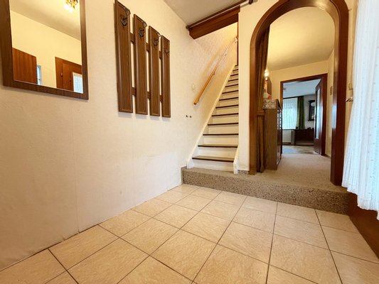 Durch den angebauten Windfang betreten Sie das Zuhause. In der Diele empfängt Sie warmes Holz. Legen Sie bequem an der Garderobe ab.