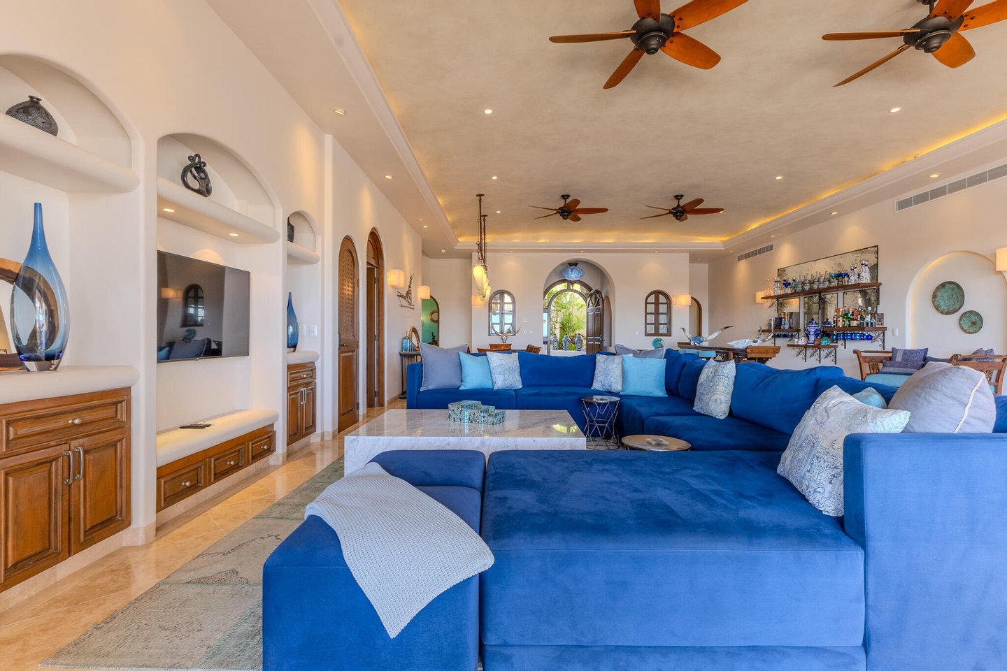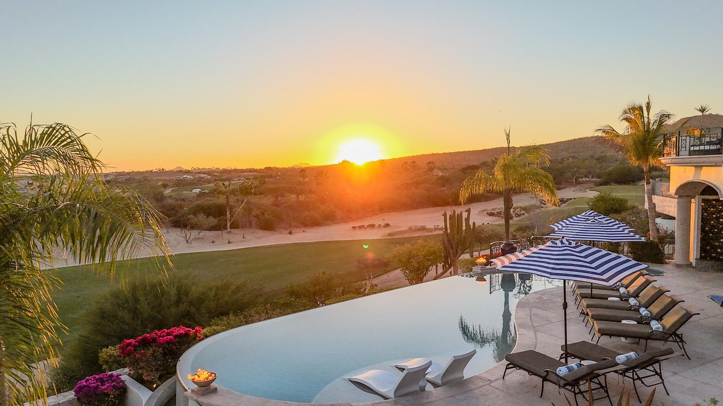 Willkommen in Casa Alegria ("Haus des Glücks", einem seltenen Juwel in der begehrten Gemeinde Cabo del Sol. Dieses außergewöhnliche, zweistöckige, voll möblierte Haus bietet luxuriöses Wohnen und verbindet nahtlos Innenkomfort mit atemberaubender Schönheit im Freien. Casa Alegria liegt in einer erstklassigen Lage und bietet unvergleichliche 180-Grad-Ausblicke. Beobachten Sie den Sonnenaufgang über dem Ozean und den Sonnenuntergang hinter den Bergen – alles bequem von Ihrem eigenen privaten Rückzugsort aus. Hauptebene – Der ultimative Rückzugsort. Treten Sie ein in eine Welt der Eleganz, in der 12 Fuß hohe Decken und ein offenes Design einen einladenden Raum für Familie und Freunde schaffen. Die prächtigen Wohn- und Essbereiche führen mühelos nach draußen und integrieren Cabos charakteristischen Innen- und Außenlebensstil: Gourmet-Innenküche mit neuen Geräten - Außenküche mit eingebautem Grill und Pizzaofen - Großer Pool und Jacuzzi, perfekt zum Genießen der Aussicht - Mehrere Außensitzbereiche, darunter eine Feuerstelle, Sonnenliegen, schattige Gesprächsbereiche, Esstisch, und Bar-Sitzgelegenheiten mit Durchgangszugang zur Küche – Zwei geräumige Schlafzimmer mit eigenem Bad und privatem Außenzugang – Executive Office, ideal für Remote-Arbeiten. Obergeschoss – The Dream Entertaining Area. Der zweite Stock von Casa Alegria ist sowohl für Spaß als auch für Entspannung konzipiert. Hohe 14-Fuß-Decken bieten Platz für eine Unterhaltungslounge, komplett mit: - Billardtisch und Pokertisch - TV-Lounge und riesiger Terrasse mit Blick auf das Meer - Drei zusätzliche Schlafzimmer, jedes mit eingebauten Schränken und voll ausgestatteten Badezimmern - Selbstständiges Studio mit voll ausgestatteter Küche, Wohnbereich und privatem Bad – perfekt für Langzeitgäste oder Live-in-Mitarbeiter Cabo del Sol - Eine Weltklasse-Gemeinschaft im prestigeträchtigen Cabo del Sol, dieses Zuhause ist ein Golfwagen, der von unberührten Sandstränden, dem berühmten Desert Golf Course und erstklassigen Annehmlichkeiten erreichbar ist, darunter: - Four Seasons Restaurants - Das kommende Einkaufszentrum Anima Village mit neun Restaurants - Das mit Spannung erwartete Soho House (derzeit im Bau) Weitere Ausstattungen: - Garage für zwei Autos mit großzügigem Stauraum - Große Einfahrt mit Platz für 3 zusätzliche Fahrzeuge - Modernisierter Propantank und Hurrikanfensterläden - Frisch gestrichen und sorgfältig gepflegt von dieselbe Hausverwaltung seit 15 Jahren. Entdecken Sie die 3D-virtuelle Tour oder vereinbaren Sie noch heute eine private persönliche Besichtigung!