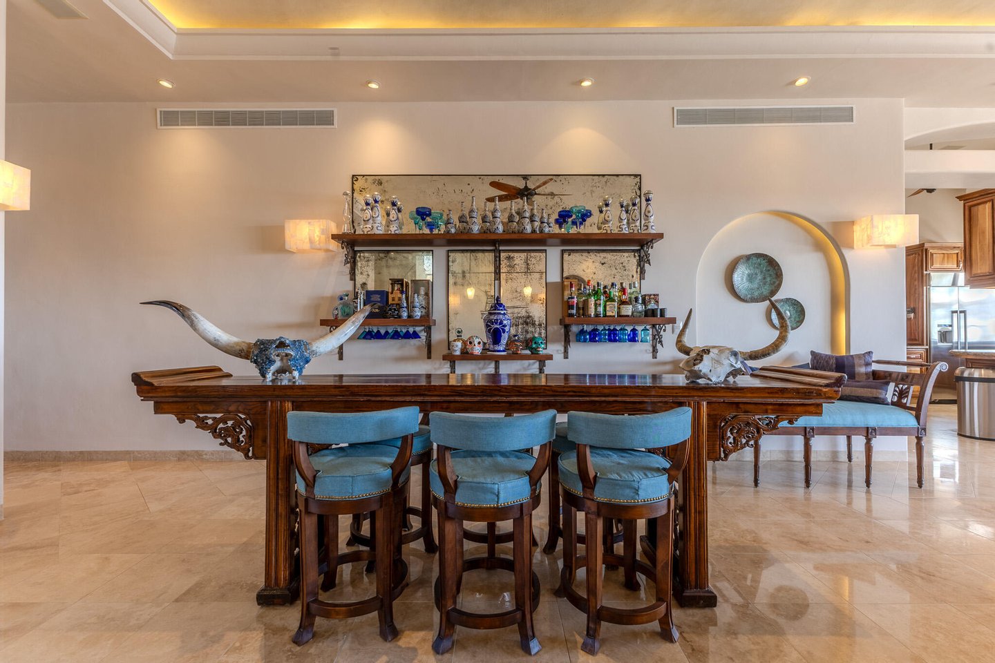 Willkommen in Casa Alegria ("Haus des Glücks", einem seltenen Juwel in der begehrten Gemeinde Cabo del Sol. Dieses außergewöhnliche, zweistöckige, voll möblierte Haus bietet luxuriöses Wohnen und verbindet nahtlos Innenkomfort mit atemberaubender Schönheit im Freien. Casa Alegria liegt in einer erstklassigen Lage und bietet unvergleichliche 180-Grad-Ausblicke. Beobachten Sie den Sonnenaufgang über dem Ozean und den Sonnenuntergang hinter den Bergen – alles bequem von Ihrem eigenen privaten Rückzugsort aus. Hauptebene – Der ultimative Rückzugsort. Treten Sie ein in eine Welt der Eleganz, in der 12 Fuß hohe Decken und ein offenes Design einen einladenden Raum für Familie und Freunde schaffen. Die prächtigen Wohn- und Essbereiche führen mühelos nach draußen und integrieren Cabos charakteristischen Innen- und Außenlebensstil: Gourmet-Innenküche mit neuen Geräten - Außenküche mit eingebautem Grill und Pizzaofen - Großer Pool und Jacuzzi, perfekt zum Genießen der Aussicht - Mehrere Außensitzbereiche, darunter eine Feuerstelle, Sonnenliegen, schattige Gesprächsbereiche, Esstisch, und Bar-Sitzgelegenheiten mit Durchgangszugang zur Küche – Zwei geräumige Schlafzimmer mit eigenem Bad und privatem Außenzugang – Executive Office, ideal für Remote-Arbeiten. Obergeschoss – The Dream Entertaining Area. Der zweite Stock von Casa Alegria ist sowohl für Spaß als auch für Entspannung konzipiert. Hohe 14-Fuß-Decken bieten Platz für eine Unterhaltungslounge, komplett mit: - Billardtisch und Pokertisch - TV-Lounge und riesiger Terrasse mit Blick auf das Meer - Drei zusätzliche Schlafzimmer, jedes mit eingebauten Schränken und voll ausgestatteten Badezimmern - Selbstständiges Studio mit voll ausgestatteter Küche, Wohnbereich und privatem Bad – perfekt für Langzeitgäste oder Live-in-Mitarbeiter Cabo del Sol - Eine Weltklasse-Gemeinschaft im prestigeträchtigen Cabo del Sol, dieses Zuhause ist ein Golfwagen, der von unberührten Sandstränden, dem berühmten Desert Golf Course und erstklassigen Annehmlichkeiten erreichbar ist, darunter: - Four Seasons Restaurants - Das kommende Einkaufszentrum Anima Village mit neun Restaurants - Das mit Spannung erwartete Soho House (derzeit im Bau) Weitere Ausstattungen: - Garage für zwei Autos mit großzügigem Stauraum - Große Einfahrt mit Platz für 3 zusätzliche Fahrzeuge - Modernisierter Propantank und Hurrikanfensterläden - Frisch gestrichen und sorgfältig gepflegt von dieselbe Hausverwaltung seit 15 Jahren. Entdecken Sie die 3D-virtuelle Tour oder vereinbaren Sie noch heute eine private persönliche Besichtigung!