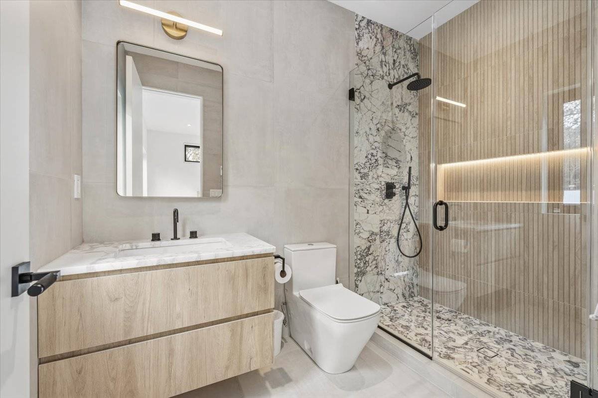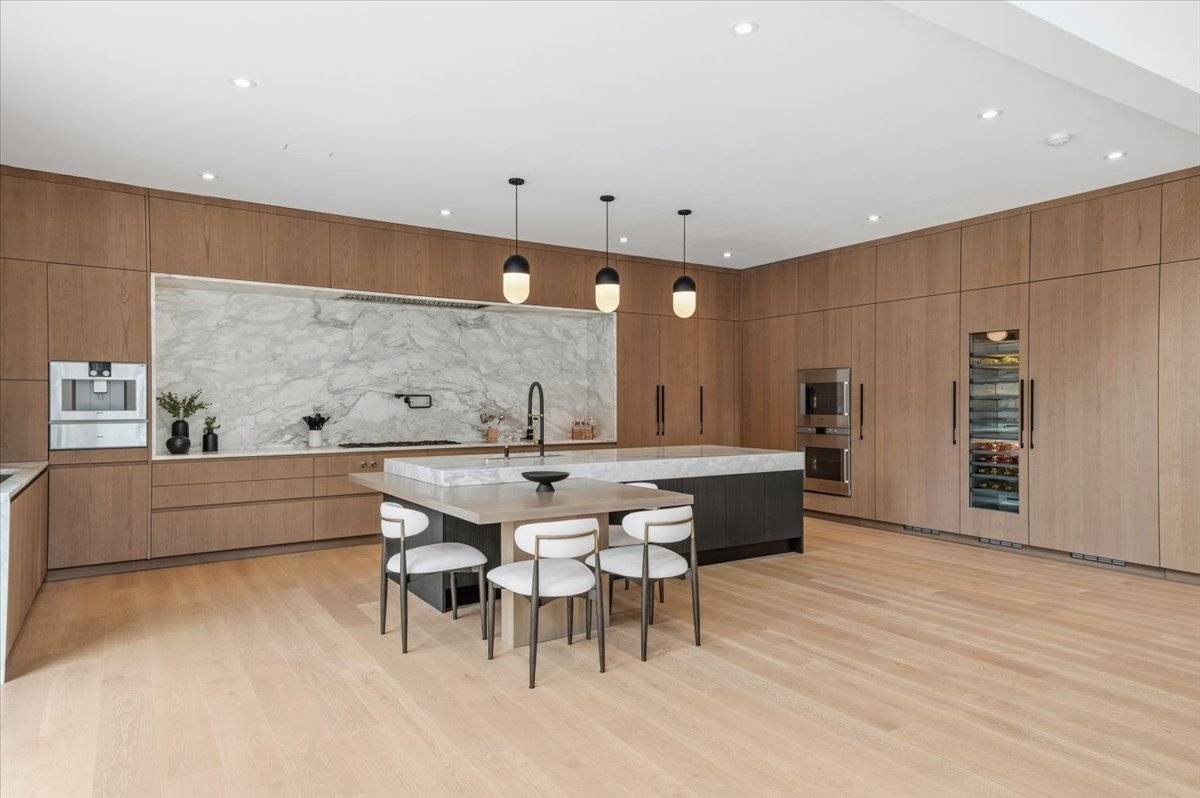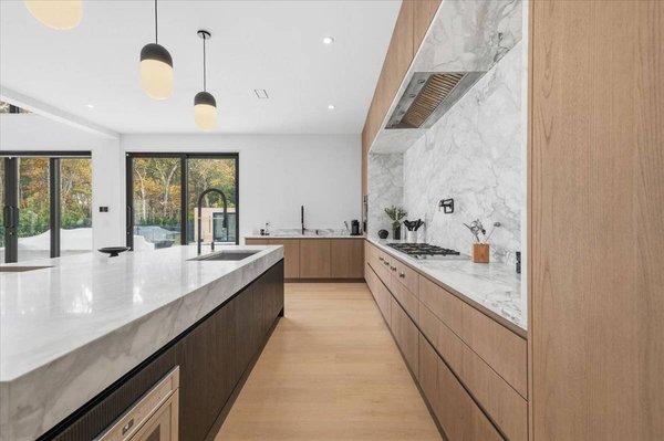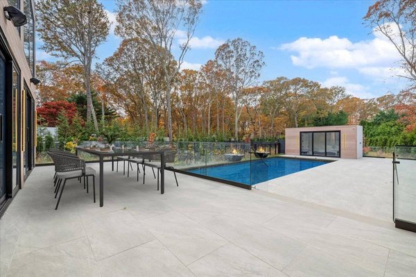Erleben Sie ein einzigartiges, modernes Retreat, das ein echtes Resort-Erlebnis bietet, umgeben von Ruhe, Privatsphäre und gehobenem Design. Am Ende einer langen, bewaldeten Einfahrt auf 1,4 Hektar südlich der Autobahn gelegen, bietet dieses brandneue Anwesen mit 7 Schlafzimmern und 10 Badezimmern architektonisches Drama, raffinierten Luxus und den vollen Hamptons Resort-Lifestyle und ist nur wenige Minuten von East Hampton Village, Wainscott Ocean Beach und Wlffer Estate Vineyard entfernt. Betreten Sie einen atemberaubenden 7,5-Meter-Eingang mit einem schwebenden 3,5 Meter hohen Kronleuchter und einem ruhigen inneren Zen-Garten, der vom Foyer und den Wohnbereichen aus sichtbar ist. Der große Raum beeindruckt mit hoch aufragenden 7,5 Meter hohen Glaswänden, weißen Eichenböden und einem gekannelten Steinkamin, der die moderne Ästhetik verankert. Die Küche des Kochs ist ein vollständig maßgeschneidertes, italienisch gestaltetes Meisterwerk mit zwei Spülen, zwei Geschirrspülern, einem 60" Gaggenau Gasinduktionskochfeld, Gaggenau Doppelöfen, einem eingebauten automatischen Kaffeesystem, einer versteckten begehbaren Speisekammer, einem 36" Kühlschrank und Gefrierschrank, einem 24" Weinkühler und einer übergroßen Kücheninsel für acht Sitzplätze. Draußen genießen Sie einen 40' x 18' beheizten Gunite-Pool mit Wasserschalen mit Feuerfunktion, einer großzügigen Steinterrasse und einem Poolhaus mit komplettem Badezimmer und Außendusche. Eine Außenküche mit Grill, Spüle und Kühlschrank schafft den perfekten Sommerunterhaltsraum. Im Inneren verfügt jedes Schlafzimmer über ein eigenes Badezimmer mit beheizten Bodenbeheizungen und maßgefertigten Schränken. Die Hauptsuite bietet zwei begehbare Kleiderschränke, einen privaten Balkon mit Blick auf den Pool sowie ein Marmorbad auf Spa-Ebene mit beheiztem Boden, einer Badewanne und einer übergroßen Dusche. Das vollständig ausgebaute Erdgeschoss erweitert Ihren Lebensstil mit einer Gästesuite, einem großzügigen Wohn-/Medienbereich und einer privaten Sauna für ultimative Entspannung. Weitere Annehmlichkeiten umfassen zwei Waschräume, eine Garage für zwei Autos, Sonance-Lautsprecher im gesamten Gebäude und alle Luxusaufrüstungen, die in einem modernen Neubau in Hamptons erwartet werden. Dies ist ein seltenes und exquisites modernes Anwesen, das echte Privatsphäre, erstklassige Annehmlichkeiten und einen Lebensstil auf Resort-Qualität bietet, geschaffen für den Käufer, der das Außergewöhnliche verlangt.