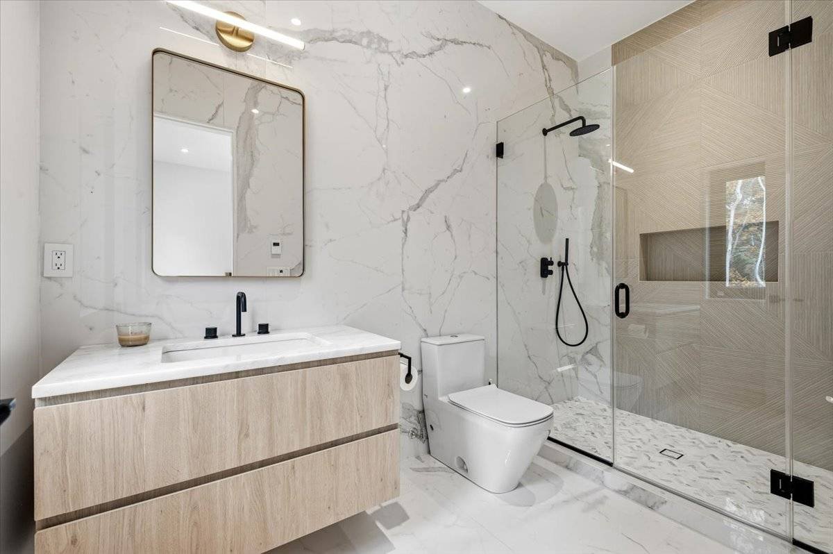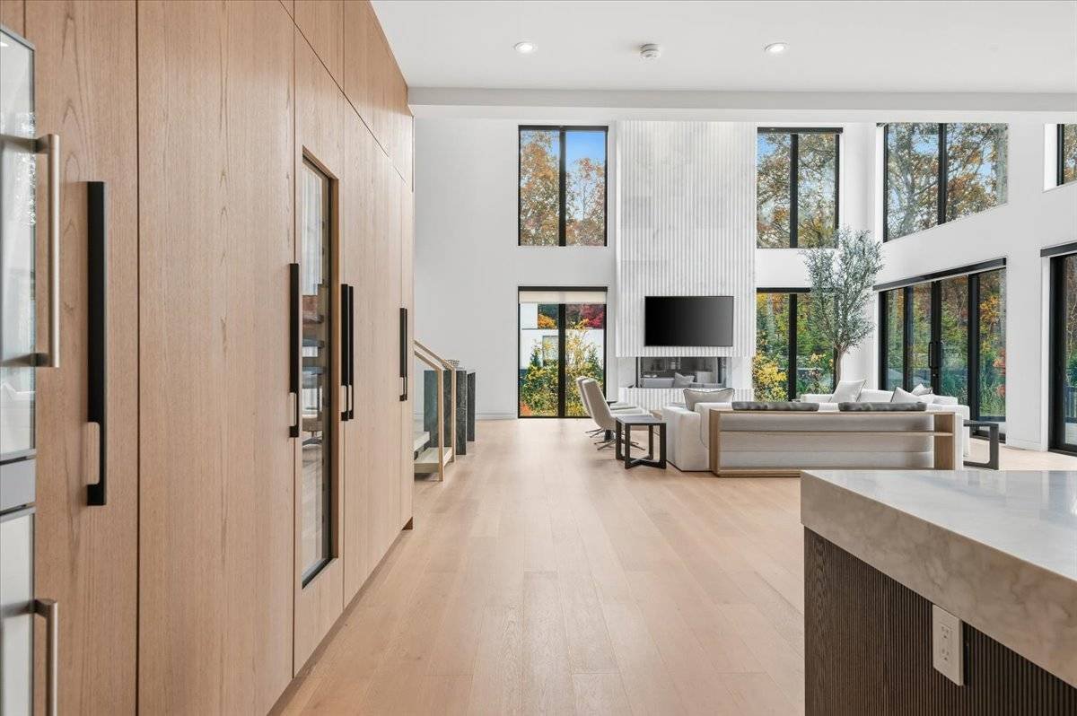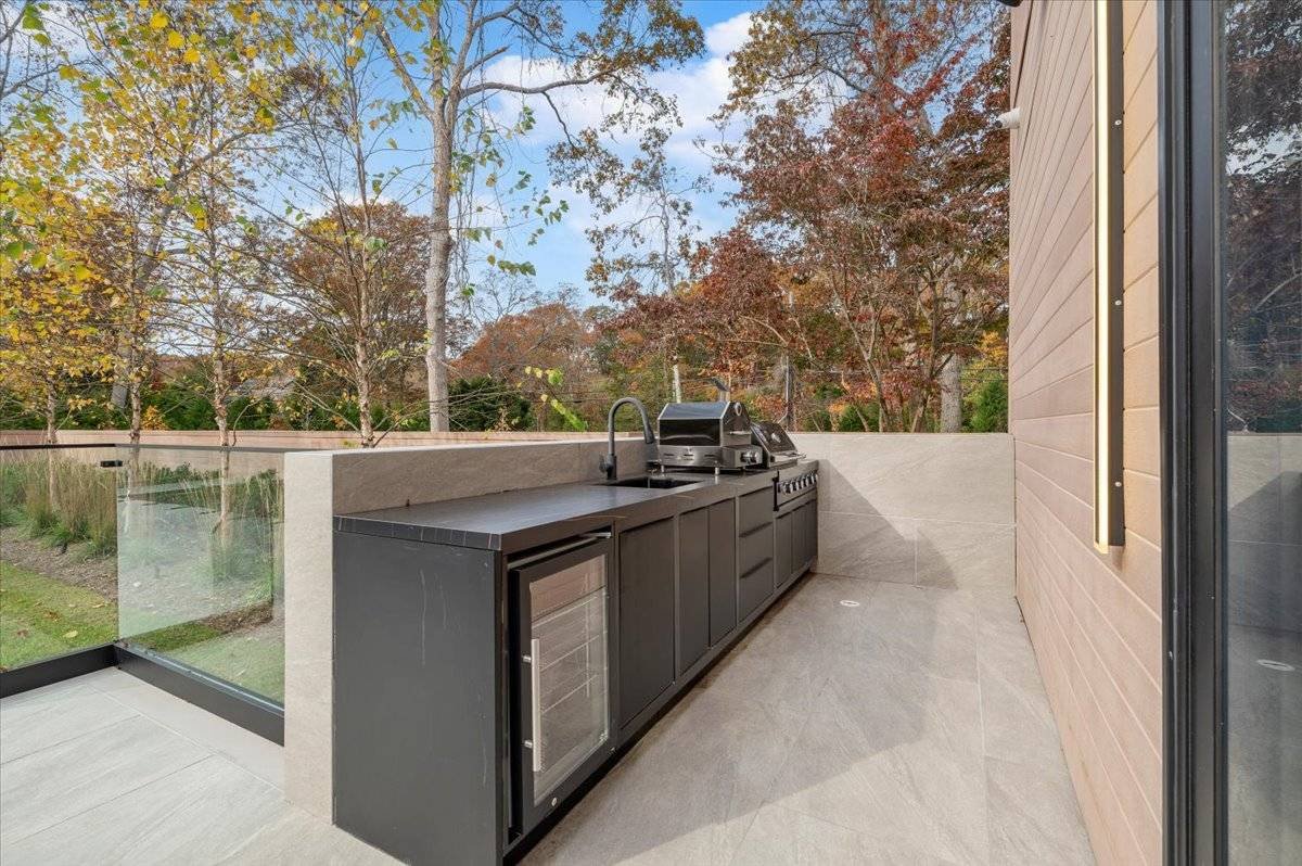 Erleben Sie ein einzigartiges, modernes Retreat, das ein echtes Resort-Erlebnis bietet, umgeben von Ruhe, Privatsphäre und gehobenem Design. Am Ende einer langen, bewaldeten Einfahrt auf 1,4 Hektar südlich der Autobahn gelegen, bietet dieses brandneue Anwesen mit 7 Schlafzimmern und 10 Badezimmern architektonisches Drama, raffinierten Luxus und den vollen Hamptons Resort-Lifestyle und ist nur wenige Minuten von East Hampton Village, Wainscott Ocean Beach und Wlffer Estate Vineyard entfernt. Betreten Sie einen atemberaubenden 7,5-Meter-Eingang mit einem schwebenden 3,5 Meter hohen Kronleuchter und einem ruhigen inneren Zen-Garten, der vom Foyer und den Wohnbereichen aus sichtbar ist. Der große Raum beeindruckt mit hoch aufragenden 7,5 Meter hohen Glaswänden, weißen Eichenböden und einem gekannelten Steinkamin, der die moderne Ästhetik verankert. Die Küche des Kochs ist ein vollständig maßgeschneidertes, italienisch gestaltetes Meisterwerk mit zwei Spülen, zwei Geschirrspülern, einem 60" Gaggenau Gasinduktionskochfeld, Gaggenau Doppelöfen, einem eingebauten automatischen Kaffeesystem, einer versteckten begehbaren Speisekammer, einem 36" Kühlschrank und Gefrierschrank, einem 24" Weinkühler und einer übergroßen Kücheninsel für acht Sitzplätze. Draußen genießen Sie einen 40' x 18' beheizten Gunite-Pool mit Wasserschalen mit Feuerfunktion, einer großzügigen Steinterrasse und einem Poolhaus mit komplettem Badezimmer und Außendusche. Eine Außenküche mit Grill, Spüle und Kühlschrank schafft den perfekten Sommerunterhaltsraum. Im Inneren verfügt jedes Schlafzimmer über ein eigenes Badezimmer mit beheizten Bodenbeheizungen und maßgefertigten Schränken. Die Hauptsuite bietet zwei begehbare Kleiderschränke, einen privaten Balkon mit Blick auf den Pool sowie ein Marmorbad auf Spa-Ebene mit beheiztem Boden, einer Badewanne und einer übergroßen Dusche. Das vollständig ausgebaute Erdgeschoss erweitert Ihren Lebensstil mit einer Gästesuite, einem großzügigen Wohn-/Medienbereich und einer privaten Sauna für ultimative Entspannung. Weitere Annehmlichkeiten umfassen zwei Waschräume, eine Garage für zwei Autos, Sonance-Lautsprecher im gesamten Gebäude und alle Luxusaufrüstungen, die in einem modernen Neubau in Hamptons erwartet werden. Dies ist ein seltenes und exquisites modernes Anwesen, das echte Privatsphäre, erstklassige Annehmlichkeiten und einen Lebensstil auf Resort-Qualität bietet, geschaffen für den Käufer, der das Außergewöhnliche verlangt.