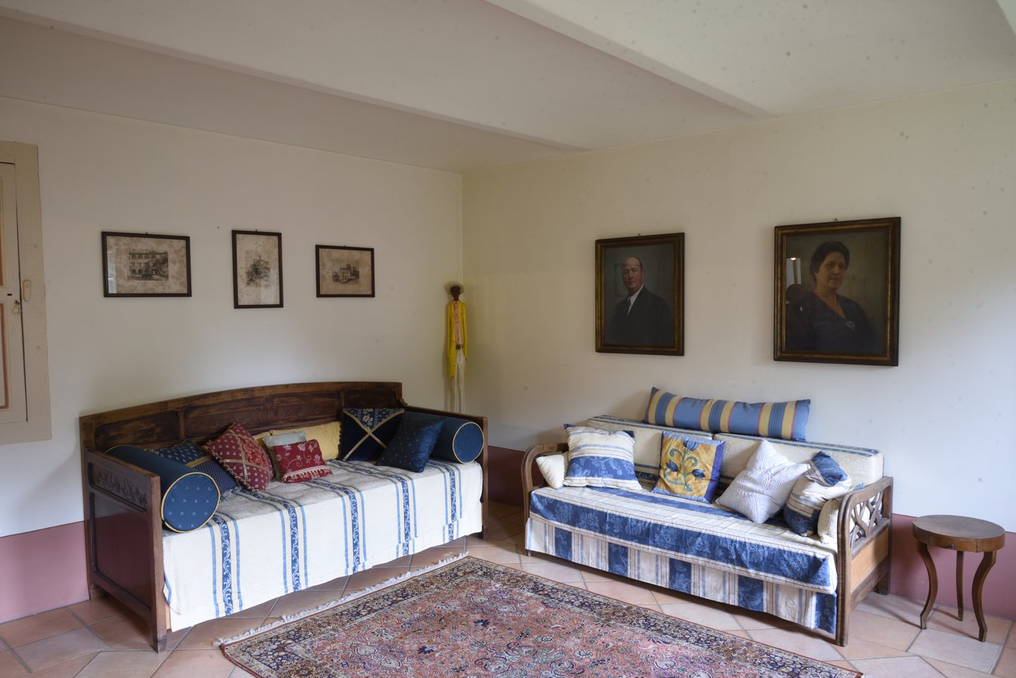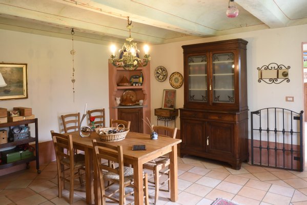 The farmhouse includes a large front portico, perfect for summer evenings by candlelight. Adjacent to it is an original, fully functioning wood-fired oven.