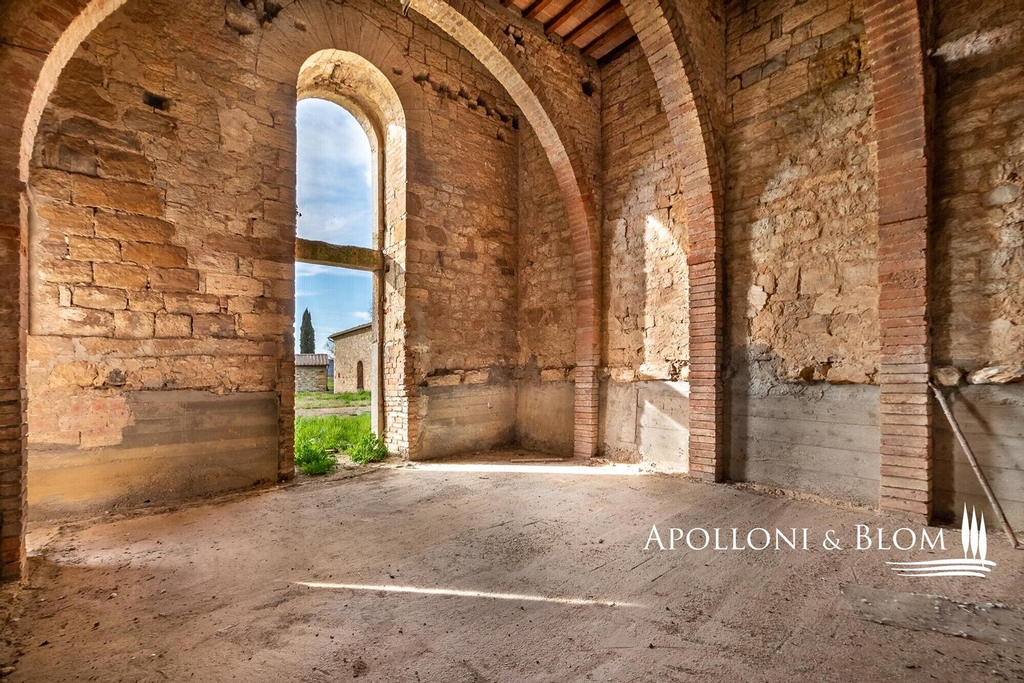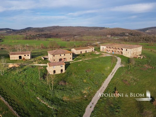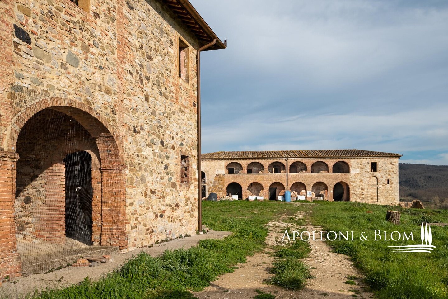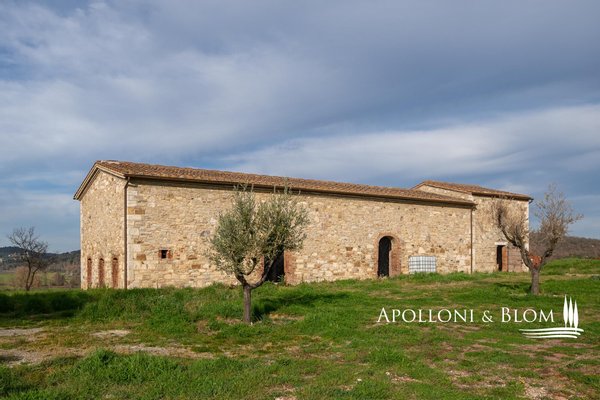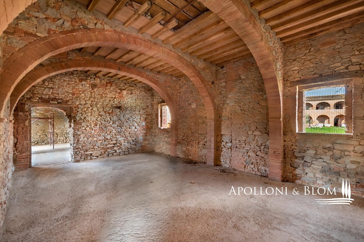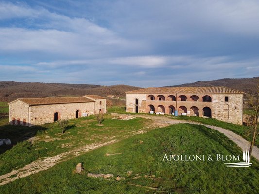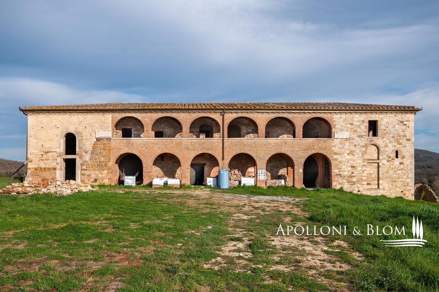Altes Bauernhaus aus dem Ende des 18. Jahrhunderts mit Loggien und Säulengängen, bis ins Grobe restauriert, ideal für eine Beherbergungseinrichtung auf dem Lande von Rapolano Terme zu verkaufen. Nur 20 km östlich von Siena, im Herzen der Crete Senesi, nur wenige Minuten vom Chianti Classico-Gebiet und den wichtigsten Kunstzentren entfernt, mit Geschäften und Dienstleistungen in unmittelbarer Nähe, altes, im Rohzustand restauriertes Bauernhaus, ideal für eine Beherbergungseinrichtung und ein Landhotel. Besonders hervorzuheben sind das Herrenhaus mit seiner traditionellen Fassade mit Säulengang im Erdgeschoss und Loggien im ersten Stock, ein herrlicher Innenhof, der von den Innenräumen überblickt wird, und die Räume der alten Pfarrkirche mit ihren beeindruckenden Ziegeldecken und Bögen. Die Säulen und Bögen der Räume sowie die freiliegenden Holzbalkendecken sind traditionelle Elemente, die dem gesamten Komplex den alten Charme des Landlebens verleihen. An das Herrenhaus schließen sich ein zweites zweistöckiges Bauernhaus aus Stein und drei weitere Nebengebäude an, ebenfalls aus Stein und mit dem traditionellen Giebeldach mit Terrakotta-Ziegeln. Mit einer Gesamtfläche von über 2300 Quadratmetern ist die Fattoria La Pieve ein Ort voller Charme und mit hervorragendem Potenzial für die Schaffung von eleganten Residenzen, die ideal für den privaten Gebrauch sind, um sie mit Familie und Freunden zu bewohnen, und die sich perfekt als Landresort eignen, um Touristen und Reisende für ihre Ferien zu beherbergen.
