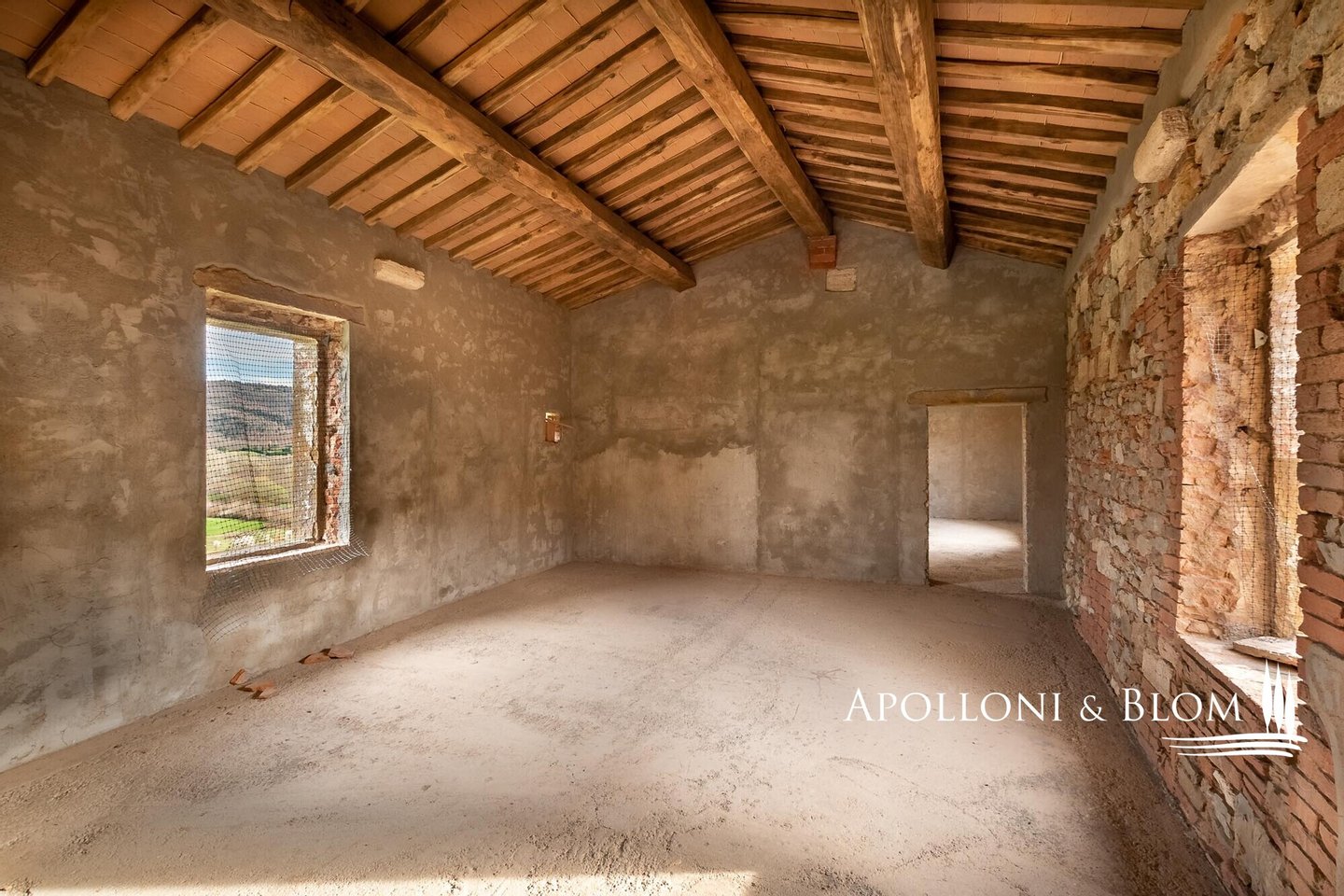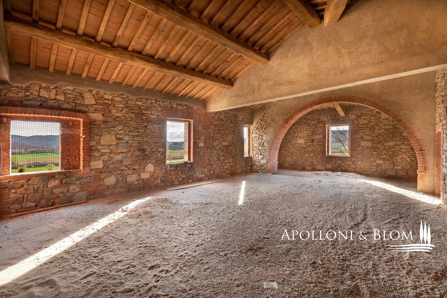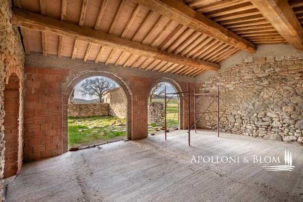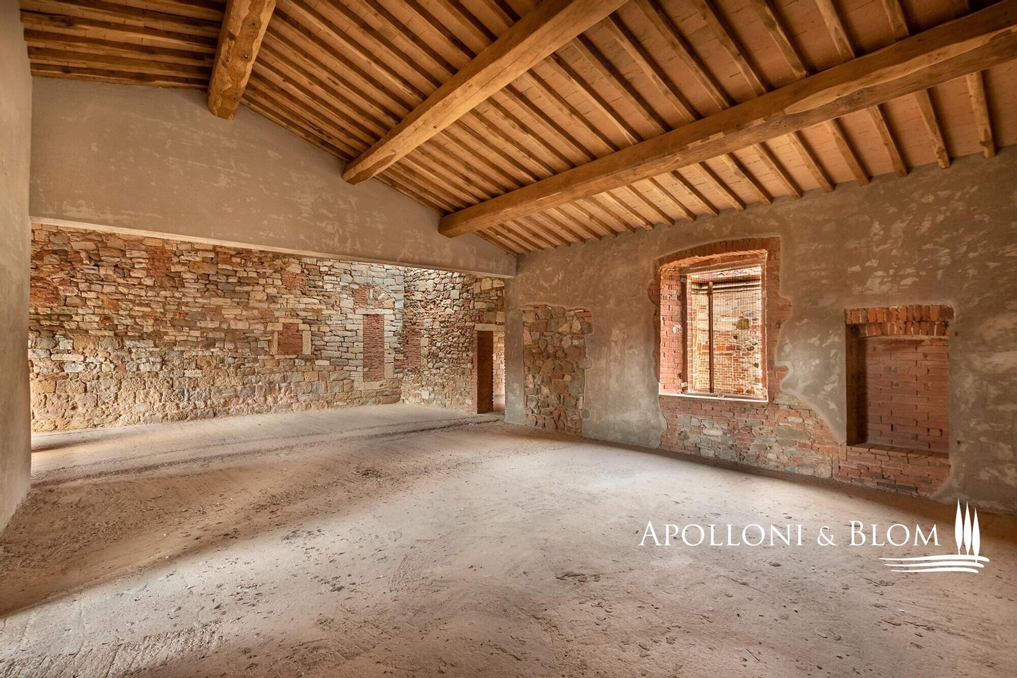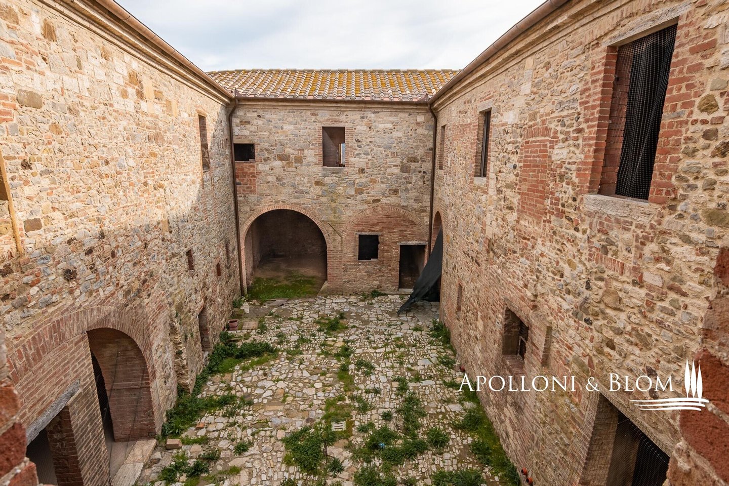 Altes Bauernhaus aus dem Ende des 18. Jahrhunderts mit Loggien und Säulengängen, bis ins Grobe restauriert, ideal für eine Beherbergungseinrichtung auf dem Lande von Rapolano Terme zu verkaufen. Nur 20 km östlich von Siena, im Herzen der Crete Senesi, nur wenige Minuten vom Chianti Classico-Gebiet und den wichtigsten Kunstzentren entfernt, mit Geschäften und Dienstleistungen in unmittelbarer Nähe, altes, im Rohzustand restauriertes Bauernhaus, ideal für eine Beherbergungseinrichtung und ein Landhotel. Besonders hervorzuheben sind das Herrenhaus mit seiner traditionellen Fassade mit Säulengang im Erdgeschoss und Loggien im ersten Stock, ein herrlicher Innenhof, der von den Innenräumen überblickt wird, und die Räume der alten Pfarrkirche mit ihren beeindruckenden Ziegeldecken und Bögen. Die Säulen und Bögen der Räume sowie die freiliegenden Holzbalkendecken sind traditionelle Elemente, die dem gesamten Komplex den alten Charme des Landlebens verleihen. An das Herrenhaus schließen sich ein zweites zweistöckiges Bauernhaus aus Stein und drei weitere Nebengebäude an, ebenfalls aus Stein und mit dem traditionellen Giebeldach mit Terrakotta-Ziegeln. Mit einer Gesamtfläche von über 2300 Quadratmetern ist die Fattoria La Pieve ein Ort voller Charme und mit hervorragendem Potenzial für die Schaffung von eleganten Residenzen, die ideal für den privaten Gebrauch sind, um sie mit Familie und Freunden zu bewohnen, und die sich perfekt als Landresort eignen, um Touristen und Reisende für ihre Ferien zu beherbergen.