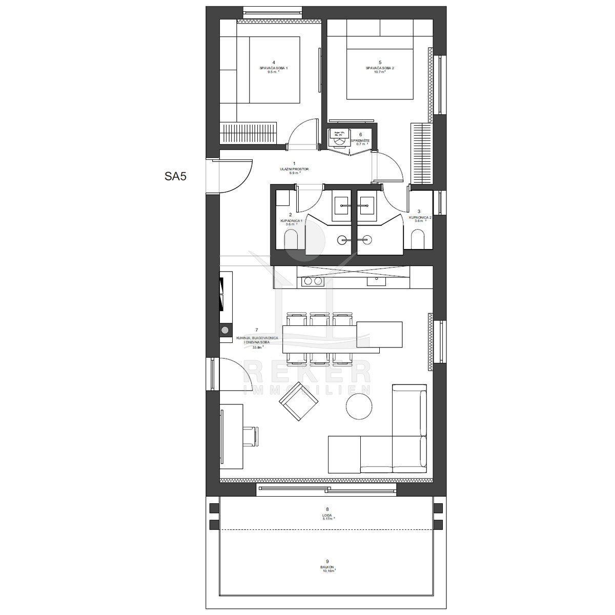 In Zaton, einem charmanten Ortsteil bei Nin, entsteht ein hochwertiges Neubauprojekt, nur rund 100 Meter vom Meer entfernt. Die Anlage fügt sich harmonisch in das mediterrane Umfeld ein und eröffnet dank ihrer erhöhten Position einen weiten Blick auf