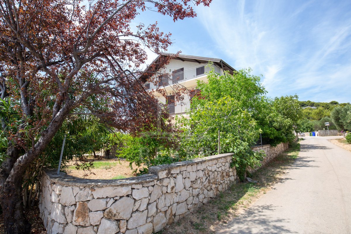 Direkt am Meer steht dieses großzügige Haus in Murter. Die Adresse zählt zu den begehrtesten im Norden Dalmatiens. Das 1 740 m² große Grundstück bietet Ihnen eine Meeresfront von rund 52 Metern und damit einen freien Blick auf die türkisfarbene See.