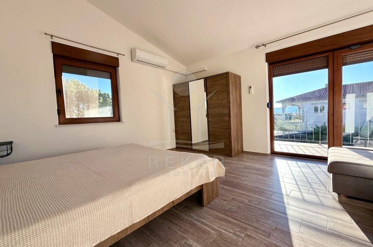 Nahe der Stadt Krk, eingebettet in ruhiges Grün, steht dieses moderne Doppelhaus mit rund 200 m² Wohnfläche. Nur etwa 2 km trennen Sie vom Meer. Eine ausgewogene Mischung aus Stadtnähe und Ruhe. Zwei private Stellplätze direkt am Haus machen das Ankommen bequem.