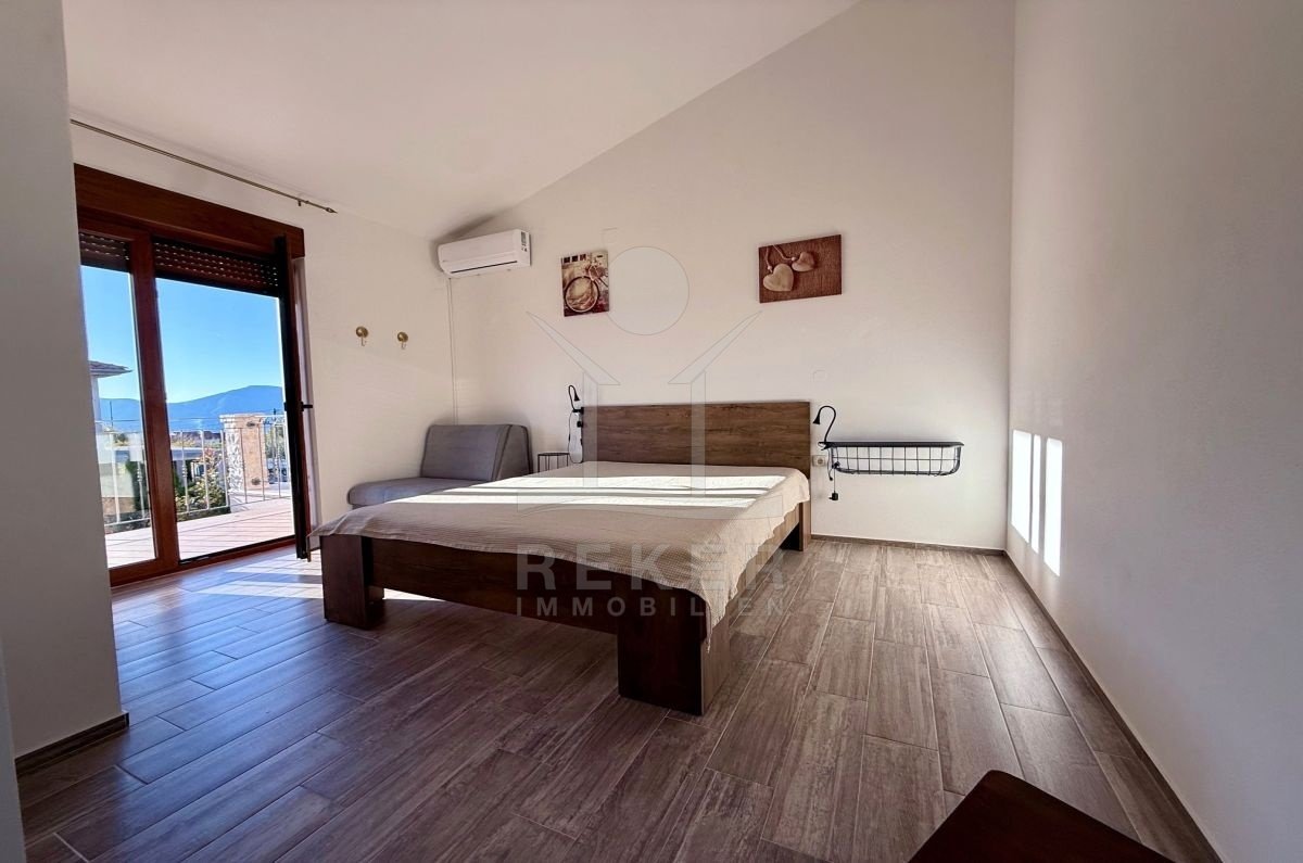 Auf 200 m² Wohnfläche erwartet Sie zeitgemäße Architektur mit hochwertigen Materialien, Fußbodenheizung und Klimaanlage. Der private Pool und der Meerblick schaffen eine Wohnqualität, die man sonst nur im Urlaub erlebt.