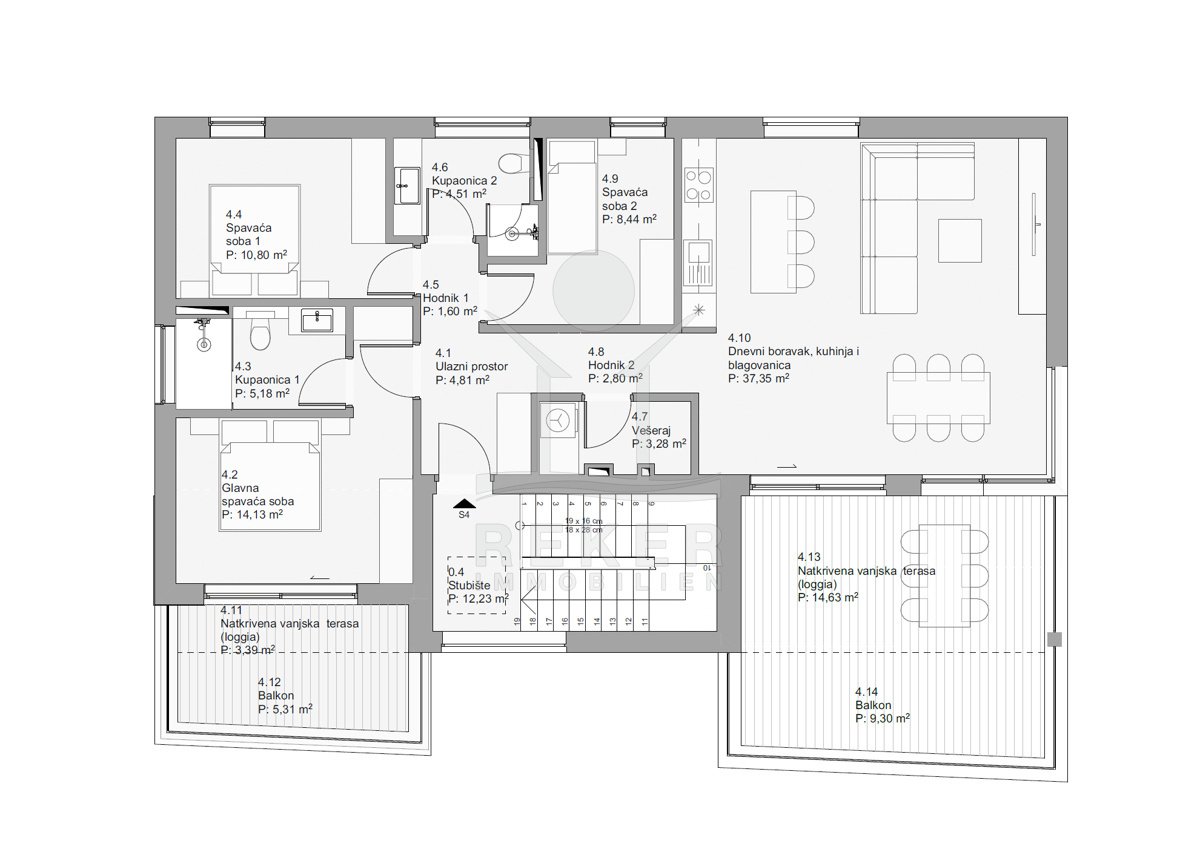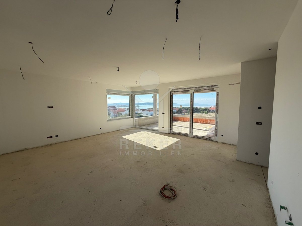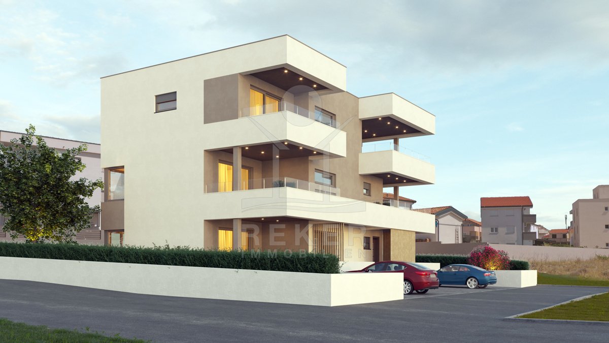 Das Gebäude umfasst vier Wohnungen auf drei Ebenen. Im Erdgeschoss und im ersten Stock entstehen zwei identische Einheiten. Darüber befindet sich das Penthouse mit großzügigem Blick auf das Meer. Eine weitere Wohnung erstreckt sich über zwei Etagen, unten mit Wohnbereich, oben mit Schlafzimmern. Jede Einheit bietet eine eigene Terrasse oder einen Balkon, perfekt, um die Umgebung auf sich wirken zu lassen. Die Architektur überzeugt mit klarer, moderner Formensprache und einem Fokus auf Raumgefühl und Aussicht. Für jede Wohnung steht ein eigener Parkplatz direkt vor dem Haus zur Verfügung.