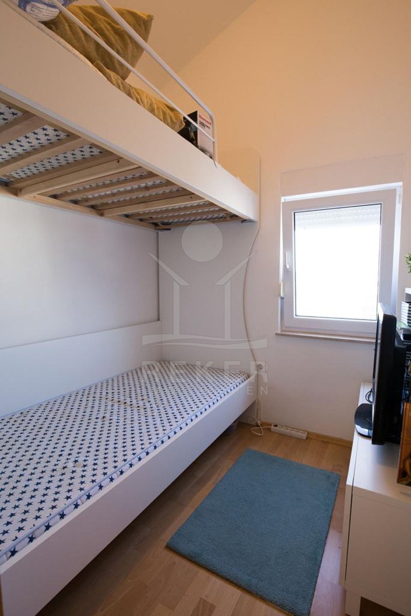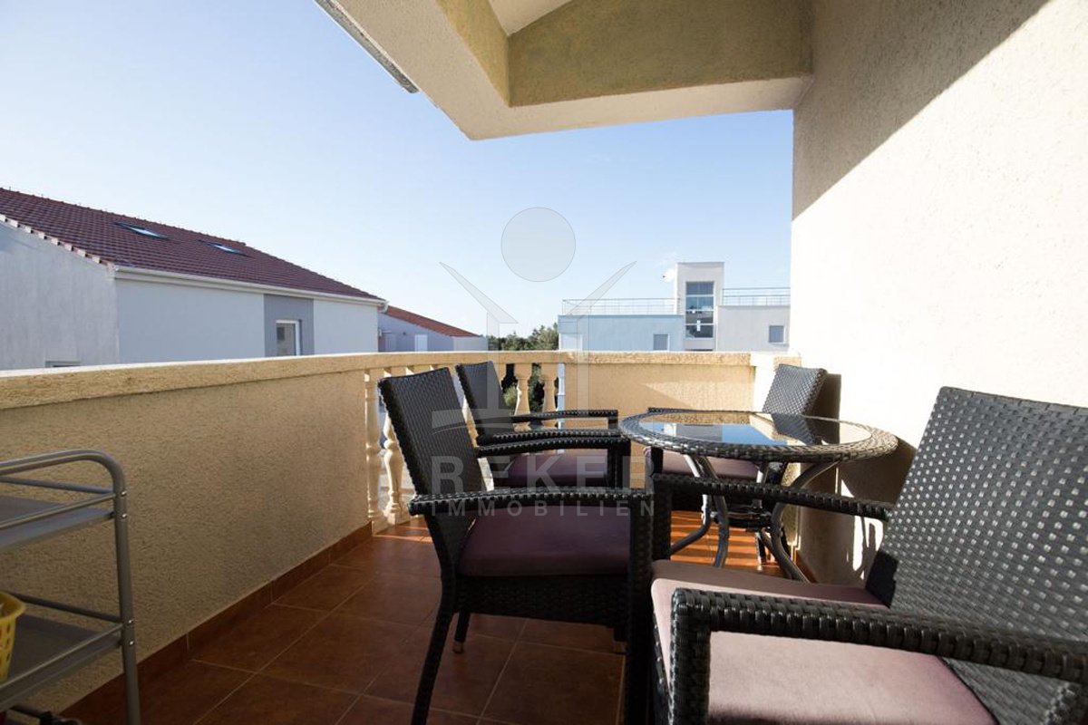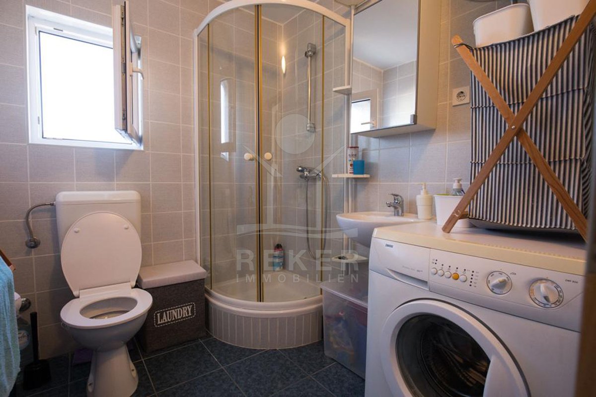 Diese helle Wohnung im zweiten Obergeschoss eines gepflegten Hauses in Petrčane bietet alles für angenehmes Wohnen an der dalmatinischen Küste. Die Umgebung ist grün, ruhig und von mediterraner Natur geprägt. Ein eigener Außenstellplatz direkt am Haus sorgt für entspanntes Ankommen.