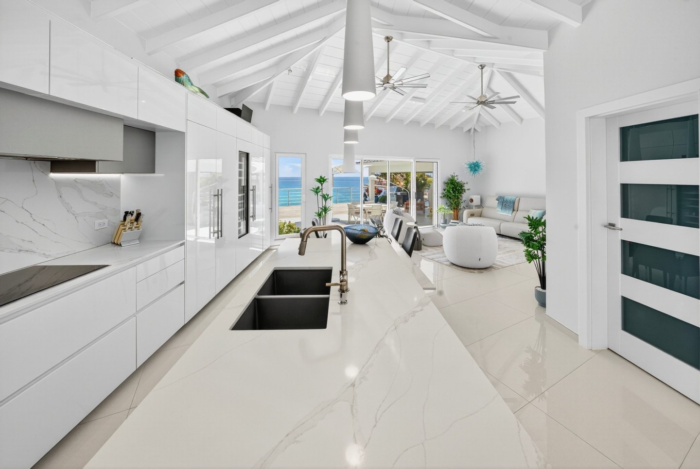 LUXURIÖSES ANWESEN AM HAFEN – ST. MAARTEN (NIEDERLÄNDISCHE SEITE) Ein seltenes karibisches Anwesen mit panoramareichem türkisfarbenem Ausblick, zwei Pools und drei separaten Luxusresidenzen. Dieses außergewöhnliche Anwesen am Meer auf der niederländischen Seite von St. Maarten verkörpert das zeitgenössische karibische Leben in seiner besten Form. Direkt über dem glitzernden türkisfarbenen Meer gelegen, bietet das Anwesen ein Maß an Privatsphäre, Größe und Flexibilität, das auf der Insel selten zu finden ist. Mit zwei privaten Pools, mehreren gehobenen Wohnhäusern, weitläufigen Außenwohnbereichen und einem spektakulären Steg zum Wasser bietet dieses Anwesen einen Lebensstil voller raffinierter Entspannung und erstklassigen Luxus. HAUPTVILLA – Moderne Küstenperfektion Die Hauptwohnung ist eine wunderschön renovierte Villa mit drei Schlafzimmern, gestaltet mit klaren architektonischen Linien, luxuriösen Oberflächen und einem nahtlosen Innen-Außen-Fluss. Zu den Highlights gehören: Hohe weiße Gewölbdecken mit freiliegenden Balken, die Volumen und natürliche Helligkeit schaffen Ein atemberaubender offener Aufenthaltsraum mit Panoramablick über die gesamte Bucht Eine Designerküche mit hochglänzenden Schränken, individuell gestaltetem Stauraum, Quarz-Arbeitsplatten und erstklassigen Geräten Geräumige Wohn- und Essbereiche, die direkt zur Terrasse am Meer öffnen Drei elegante Schlafzimmersuiten, jede mit privaten Terrassen, Meerblick und spa-inspirierte Badezimmer Hochwertige Ausstattungen: Marmorartige Oberflächen, raffinierte Fliesen, maßgeschneiderte Beleuchtung und hochwertige Armaturen Vor der Hauptvilla ist die Hauptpoolterrasse ein wahres Schaufenster – kristallblaues Wasser, integrierte Barsitze, Loungebereiche, Speiseräume im Freien und weite Ausblicke über die gesamte Küste. DIE ANGRENZENDE EINZIMMERVILLA MIT BÜRO Verbunden mit der Hauptvilla, aber vollständig unabhängig, bietet diese Einzimmerwohnung außergewöhnliche Vielseitigkeit. Komplette Schlafzimmersuite mit Blick auf das Meer Wunderschönes modernes Badezimmer Eigenes Büro mit eingebauten Doppelarbeitsplätzen und Terrassenzugang, hochwertige Schränke, moderne Oberflächen und privater Zugang Diese Villa kann problemlos in das Haupthaus integriert oder als private Gästesuite oder Eigentümerflügel genutzt werden. GÄSTESUITEN – Zwei-Zimmer-Apartment + Meer-Studio (mit eigenem Pool) An anderer Stelle des Grundstücks befindet sich ein zweiter, vollständig unabhängiger Pool und zwei weitere Luxuswohnungen: 2-Schlafzimmer-Apartment mit Meerblick, komplette Küche und Wohnzimmer, Schiebetüren aus Glas, eine private Terrasse mit Blick aufs Meer, geräumige Innenräume mit modernen Ausstattungen, Oceanfront Studio Suite, offener Schlafzimmer- und Wohnbereich, Kochnische, Modernes Badezimmer und Glastüren zu einer privaten Terrasse Perfekt für Gäste oder als Vermietung mit hoher Rendite. Beide Wohnhäuser teilen sich ihren eigenen eigenen Pool, was dem unteren Stockwerk völlige Unabhängigkeit verschafft – ideal für Mieteinnahmen oder mehrgenerationenübergreifendes Wohnen. OUTDOOR LIVING – Ein privates Meeresschutzgebiet Dieses Anwesen ist so gestaltet, dass es das karibische Klima das ganze Jahr über genießen kann, mit Angeboten: Mehrere weitläufige Terrassen zum Essen, Entspannen und Unterhalten Üppige tropische Landschaftsanlagen rund um jedes Gebäude Ein wunderschön gepflegter Gartenbereich links von der Villa – vollständig ummauert und privat Ein außergewöhnlicher Uferpromenade, der elegant in die Klippe gehauen ist und zum Wasser hinabführt mit mehreren Plattformen zum Entspannen, Sonnenbaden oder den Sonnenuntergang beobachten Diese Promenade ist ein Markenzeichen, das in Privathäusern selten zu finden ist – eine unvergleichliche Ausstattung, die dem Anwesen ein Boutique-Resort-Flair verleiht. INVESTMENT APPEAL – Ein High-Return-Luxuskomplex Mit mehreren voll ausgestatteten Wohnhäusern, zwei Pools, flexiblen Konfigurationen und einer erstklassigen Lage am Meer ist das Anwesen ideal für: Luxus-Ferienwohnungen, Mehrfamilienwohnen, ein privates Retreat mit einkommensbringenden Suiten, Ausrichtung von Veranstaltungen, Retreats und ausgedehnten Zusammenkünften. Alles ist in makellosem, einzugsbereitem Zustand und bietet sowohl Hausbesitzern als auch Investoren eine schlüsselfertige Lösung. Ein seltenes Angebot im Herzen der Karibik Mehr als eine Villa – dies ist ein vollwertiges Luxus-Komplex, das sorgfältig gestaltet wurde, um die Schönheit von St. Maartens weltberühmte Küste. Mit Privatsphäre, Platz, architektonischer Qualität und unvergesslichen Ausblicken gehört es zu den begehrtesten Strandanwesen der Insel.