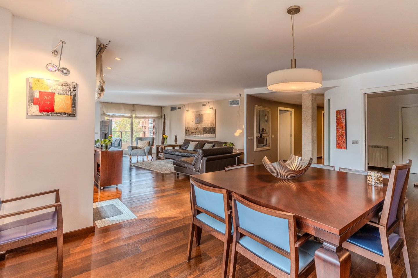 Die Wohnung befindet sich in einem Gebäude mit Portierservice, Besprechungsräumen und einem Tennisplatz, um Geschäftstreffen abzuhalten, ohne das Haus zu verlassen, und um mit Freunden und Familie Tennis zu spielen. Die komplett renovierte Immobilie und mit exquisitem Geschmack verleiht uns Design und Komfort zu gleichen Teilen. Zunächst ist der Zugang direkt vom Aufzug aus, und nachdem wir durch den Flur gegangen sind, finden wir ein spektakuläres Wohnzimmer mit bis zu drei gut differenzierten Bereichen, in denen die Geräumigkeit, Helligkeit und der Stil uns sofort beim Betreten in die Immobilie verlieben lassen. Familientreffen werden in diesem Wunder von Wohnzimmer nie wieder dasselbe sein. Natürlich mit Zugang zu zwei Terrassen mit unterschiedlicher Ausrichtung und spektakulären Ausblicken über dieses wunderbare Viertel von Barcelona. Außerdem gibt es eine eigenständige Küche, voll ausgestattet und mit hochwertigen Geräten ausgestattet, sowie einer Insel, die die ganze Nachbarschaft beneiden wird. Die Küche verfügt außerdem über einen Esstisch und eine große Speisekammer, die Sie in ein Zimmer mit separatem Bad bringt, falls Sie umfassende Hilfe bei der Hausarbeit benötigen, und Sie können von einem unabhängigen Zugang zu diesem Teil des Grundstücks für Service und Lieferanten erhalten.