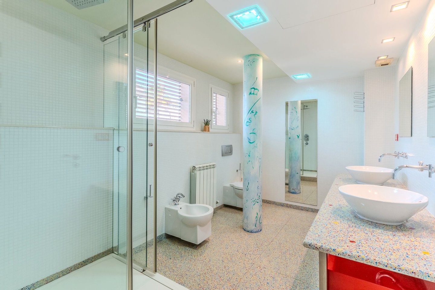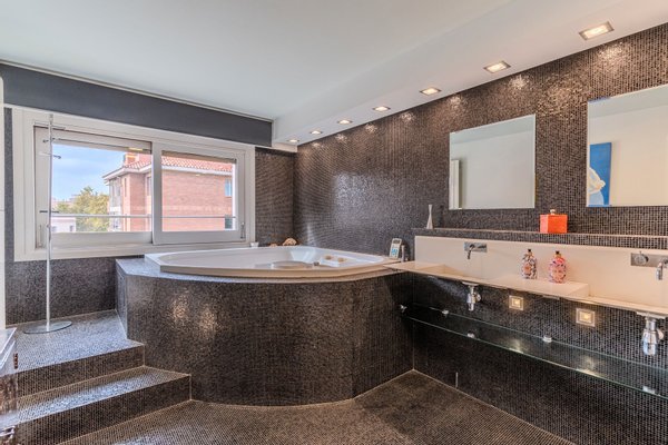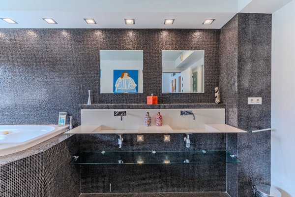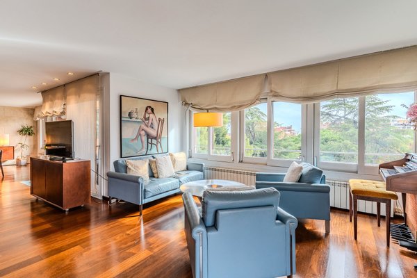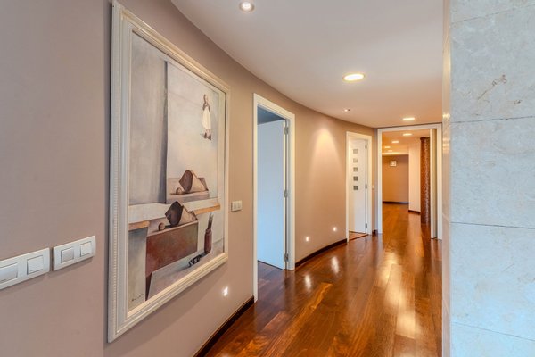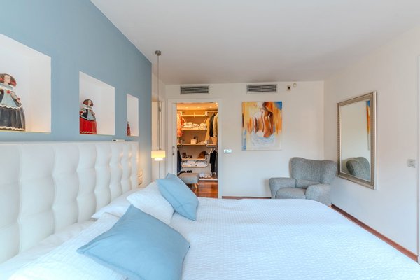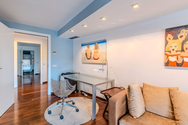Ansonsten besteht das Anwesen abgesehen vom Personalraum aus vier weiteren Schlafzimmern, von denen eines eine Supersuite mit einem Bibliotheksraum vor der Suite selbst ist, ein spektakuläres Badezimmer mit Jacuzzi, ein wunderschönes Ankleidezimmer und das Zimmer selbst. Zusätzlich gibt es eine weitere Suite mit einem sehr geräumigen und sehr hellen Raum sowie einem weiteren schönen Badezimmer. Natürlich haben die beiden Suiten unterschiedliche Terrassen mit direktem Zugang. Ansonsten zwei weitere Schlafzimmer, die sich ein weiteres Badezimmer und eine letzte Gästetoilette teilen. Wie bereits erwähnt, verfügt die Wohnung über bis zu drei spektakuläre Terrassen mit insgesamt mehr als 40 m² Fläche und unterschiedlicher Ausrichtung und privilegierter Aussicht. Die Wohnung verfügt über fünf Parkplätze im Gebäude selbst und zwei Abstellräume.