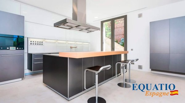 HAUPTVILLA mit 780 m² und Aufzug, 4 komfortable Schlafzimmer mit Umkleideraum, 4 Badezimmer, 1 'Besucherbad', Wohnzimmer mit Kamin, offene Küche ausgestattet und ausgestattet, deren Insel durch eine Schiebetür vom Speisesaal getrennt ist.
