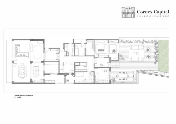 Diese außergewöhnliche 250 m² große Wohnung verfügt über eine großzügige 200 m² private Terrasse nach Osten, einen außergewöhnlichen Raum, um das Morgenlicht zu genießen, verschiedene Entspannungsbereiche zu schaffen oder Zusammenkünfte in einer privilegierten Umgebung auszurichten.