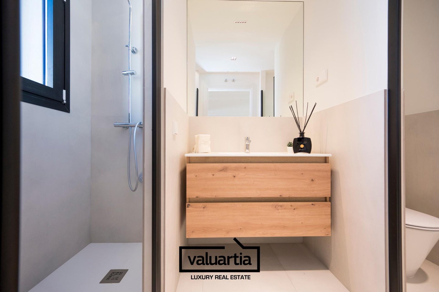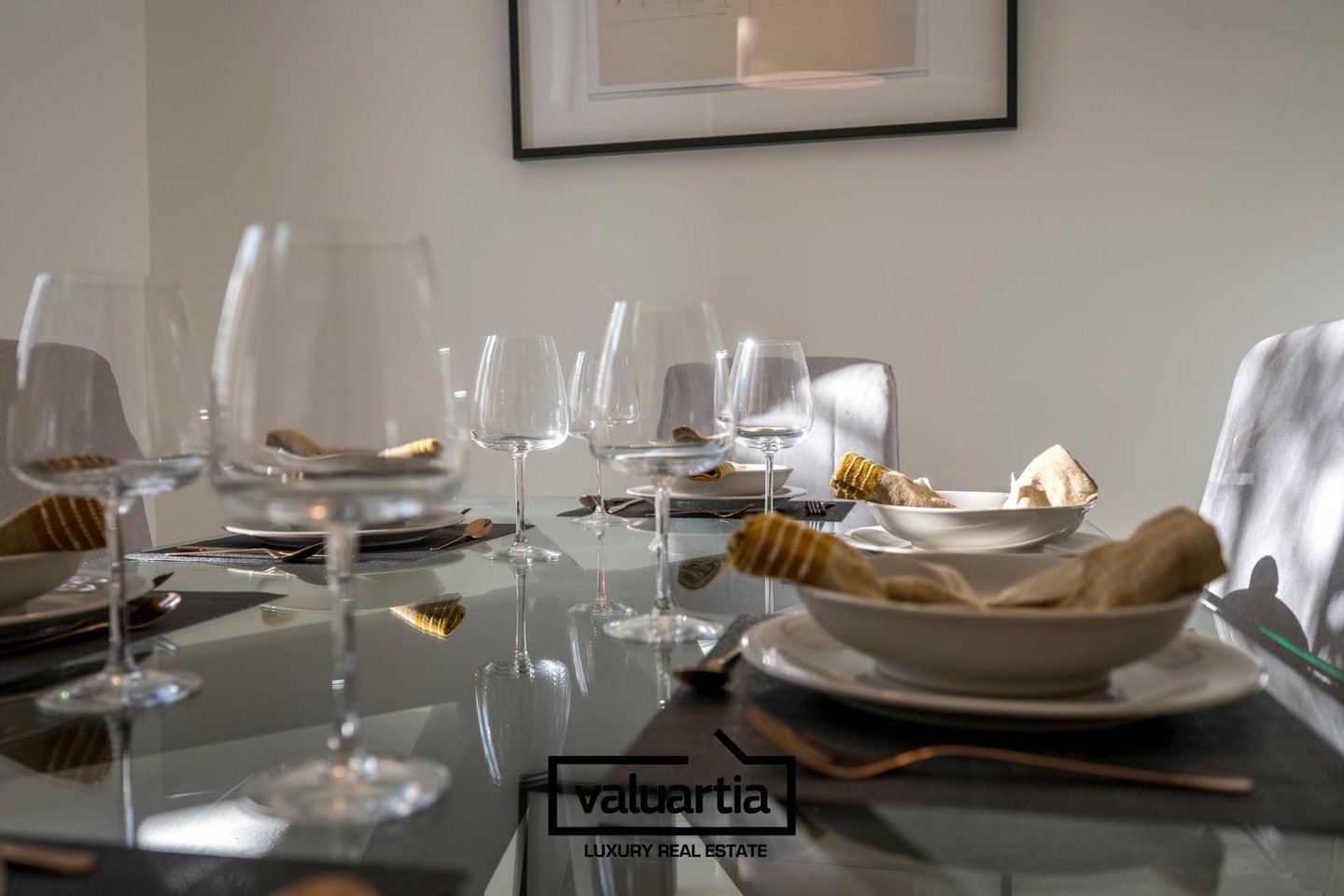 Die Küche, elegant vom Wohnzimmer getrennt, verbindet Praktikabilität und Stil. Es ist mit hochwertigen Haushaltsgeräten und modernsten Materialien ausgestattet und verfügt über einen Frühstücksbereich vor einem großen Fenster. Das Haus verfügt außerdem über einen separaten Waschraum, ein Detail, das Funktionalität und Pflege in jedem Aspekt des Designs betont.