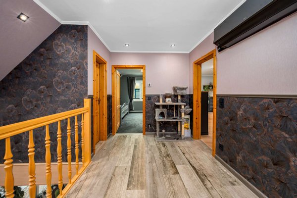 Das Erdgeschoss beeindruckt durch einen offenen, großzügigen Wohnbereich, der zum Verweilen einlädt. Die individuell gestaltete Küche ist voll ausgestattet und kann übernommen werden. Das hübsch geflieste Wannenbad mit Fenster sowie der Hauswirtschaftsraum mit Einbauschränken und Hinterausgang zum Poolbereich unterstreichen die Funktionalität des Hauses. Über eine massive Holztreppe gelangen Sie ins Obergeschoss, das drei Schlafzimmer sowie ein kürzlich renoviertes Duschbad mit Fenster und hochwertiger Ausstattung beherbergt. Das dritte Schlafzimmer bietet Zugang zum Dachboden, dessen Aufgang mit einem kleinen Einbauschrank ausgestattet ist. Der Dachboden selbst ist halb ausgebaut: die Nutzfläche ist gedämmt und klimatisiert, während die andere Hälfte als Stauraum dient.
