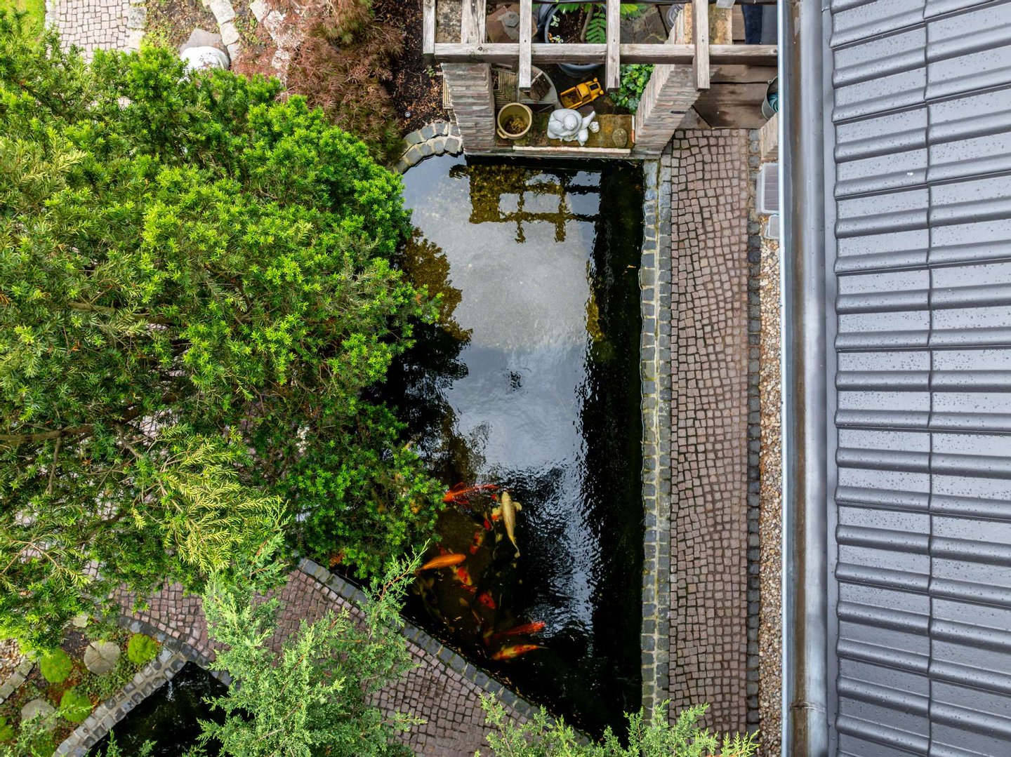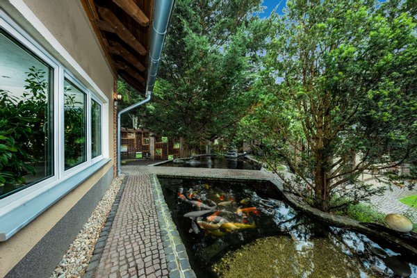 + hauseigener Koikarpfenteich mit neuem Filtersystem