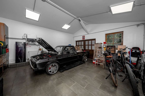 Der hübsch gemauerten Garage ist eine eigene Hebebühne zugeordnet, zudem stehen zwei weitere befestigte Außenstellplätze zur Verfügung. Das Anwesen vereint Komfort, Funktionalität und Ästhetik in perfekter Harmonie – ein Zuhause, das keine Wünsche offenlässt.