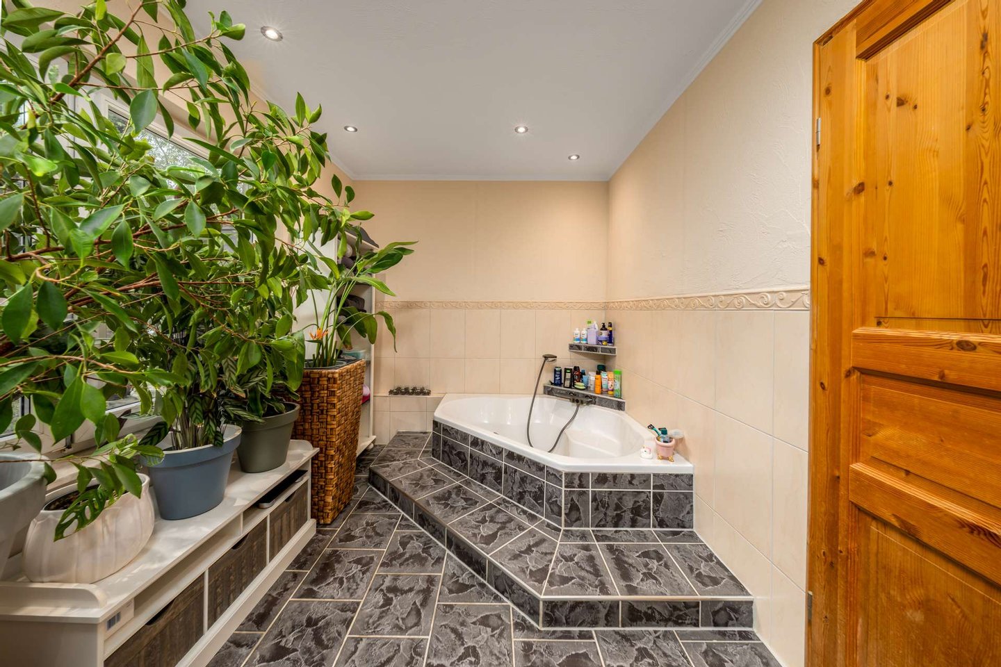 + hübsch gefliestes Wannenbad mit Fenster