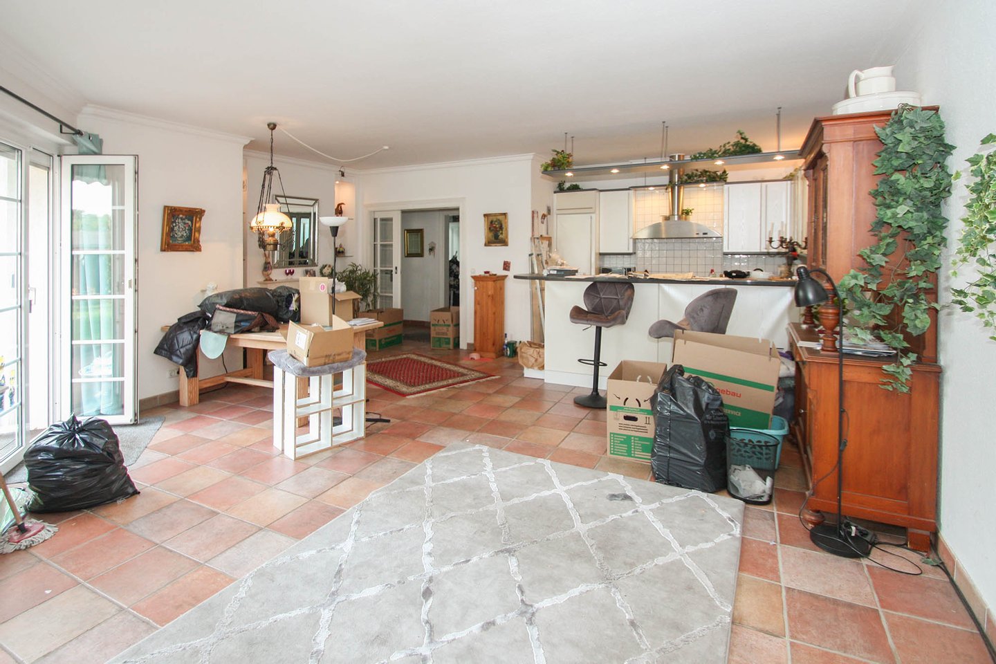 Die Wohnung im Erdgeschoss offeriert vier Wohn- und Schlafräume. Die offene Küche, Kamin, ein modernisiertes Vollbad und Fußbodenheizung sorgen für hohen Wohnkomfort. Die Maisonettewohnung erstreckt sich über das 2. Obergeschoss und Dachgeschoss und begeistert mit einer eigenen Dachterrasse.