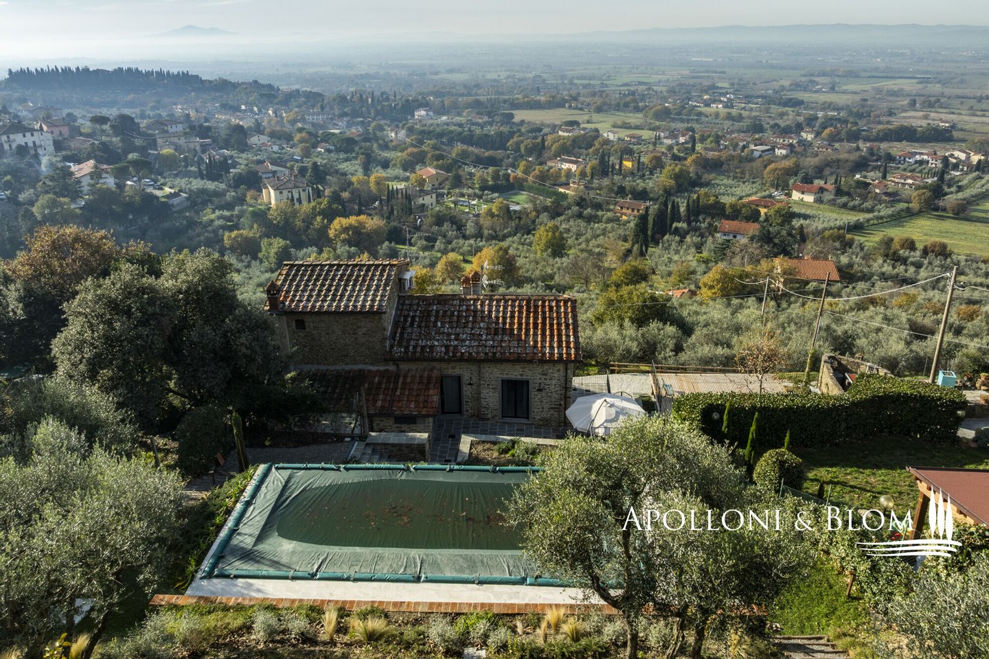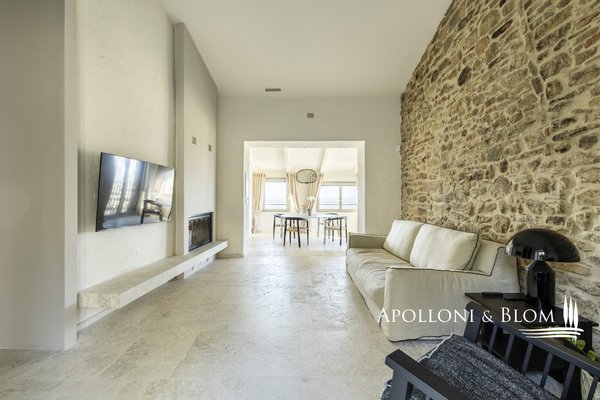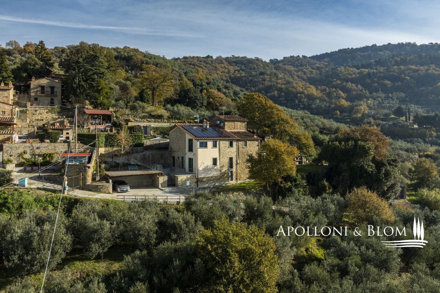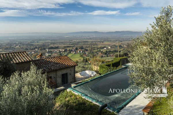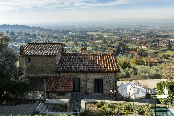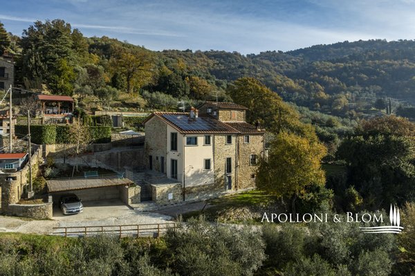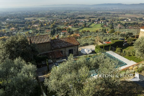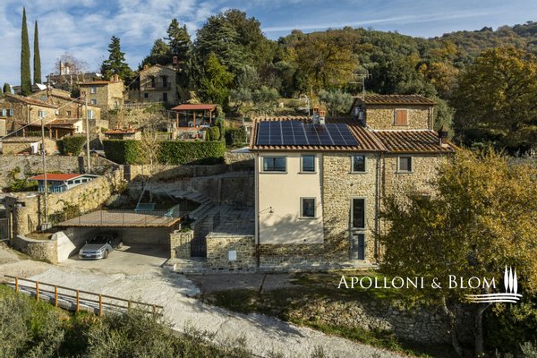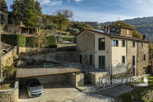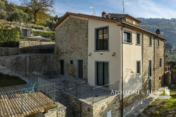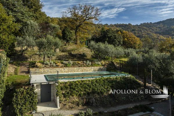 Auf dem Land in der Nähe von Arezzo, exklusive zweistöckige Residenz zu verkaufen, fein renoviert mit High-Tech-Installationen, Solarenergie. Hinter dem Dorf Fontiano, nur 7 km vom historischen Zentrum von Arezzo entfernt, befindet sich ein prächtiger Teil eines traditionellen toskanischen Bauernhauses, das den Charme des 19. Jahrhunderts mit modernster Technologie des 21. Jahrhunderts verbindet. Jahrhunderts vereint. 2023 mit luxuriösen Ausstattungen renoviert, verfügt es über die Energieklasse A3 und Solarenergie, eine Fläche von ca. 181 m² auf zwei Ebenen, einen unabhängigen Eingang und einen gepflegten Garten von 556 m², der mit einem automatischen Bewässerungssystem ausgestattet ist und von einem artesischen Brunnen für den Hausgebrauch gespeist wird. Der Außenbereich wird von einem spektakulären Swimmingpool dominiert, der sich in einer mit Travertin gepflasterten Sonnenterrasse mit Innenhof befindet und einen idyllischen Rahmen für Entspannung an der frischen Luft bietet. Im Erdgeschoss befinden sich ein einladender Eingangsbereich und ein Flur, der zu einem hellen Wohnzimmer mit Essbereich, einer Küche und einem Service-Bad führt. Im Erdgeschoss befindet sich der Schlafbereich mit drei Doppelschlafzimmern, einem geräumigen, begehbaren Kleiderschrank und einem Badezimmer, die alle durch einen zentralen Flur verbunden sind. Die gesamte Haustechnik ist diskret im Technikraum im Untergeschoss untergebracht. Hochmoderne Systeme: Die Immobilie ist mit einer 9-kW-Photovoltaikanlage mit einer 10-kW-Drehstromversorgung und einem Hausautomationssystem zur Steuerung der wichtigsten Funktionen ausgestattet. Die Klimatisierung erfolgt über ein hocheffizientes Wärmepumpensystem zum Heizen und Kühlen, das perfekt durch ein kontrolliertes mechanisches Lüftungssystem mit Wärmerückgewinnung ergänzt wird, das einen kontinuierlichen Luftaustausch gewährleistet. Ein traditioneller Kamin mit Belüftung, der die Wärme effizient über den gesamten Boden verteilt, sowie alle Fenster und Türen mit Moskitonetzen sorgen für zusätzlichen Komfort. Im Außenbereich ist die Installation einer Ladestation für Elektrofahrzeuge vorgesehen. Ein geschichtsträchtiger Wohnsitz im Herzen der Toskana, ideal als Hauptwohnsitz für das ganze Jahr oder als Urlaubsdomizil, teilmöbliert und bezugsfertig zu verkaufen!