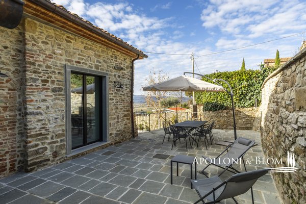 Auf dem Land in der Nähe von Arezzo, exklusive zweistöckige Residenz zu verkaufen, fein renoviert mit High-Tech-Installationen, Solarenergie. Hinter dem Dorf Fontiano, nur 7 km vom historischen Zentrum von Arezzo entfernt, befindet sich ein