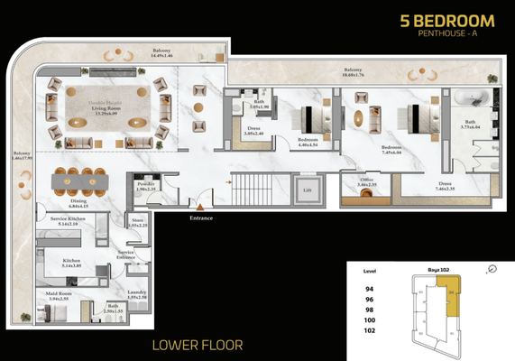 Ultra-luxuriöses 5-Schlafzimmer-Penthouse mit riesigem Grundriss und atemberaubender Aussicht