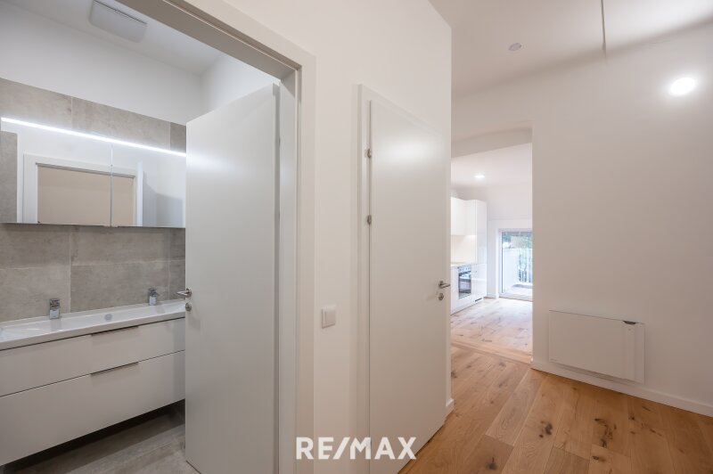 Moderne Terrassenwohnung mit außergewöhnlicher Raumhöhe – Ruhig gelegen, nach hinten gartenseitig ausgerichtet, öffnet sie sich zu einem geschützten, grünen Rückzugsbereich.