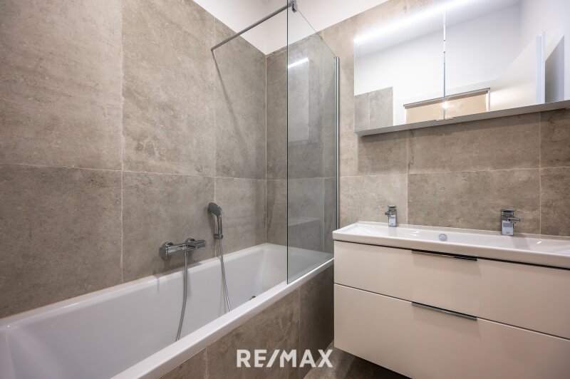 - Modernes Badezimmer mit Badewanne, LED-Spiegelschrank und Markenarmaturen