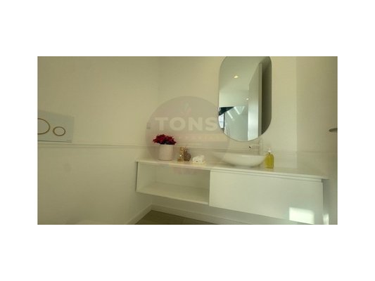 Das Erdgeschoss besteht aus einer voll ausgestatteten Küche im Open Space mit Insel und einem eleganten Wohnzimmer mit direktem Zugang zur Terrasse und zum privaten Pool sowie einer Veranda, die sich ideal für Mahlzeiten im Freien eignet, einem Solariumbereich am Pool und auch überdachtem Platz zum Parken von zwei Autos.