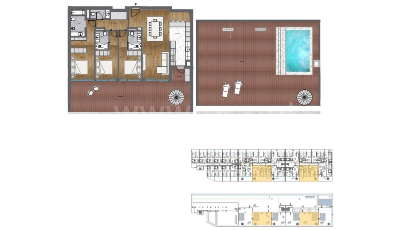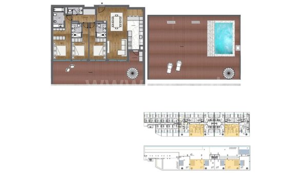 3-Zimmer-Doppelhaus mit privatem Pool und Dachterrasse.
