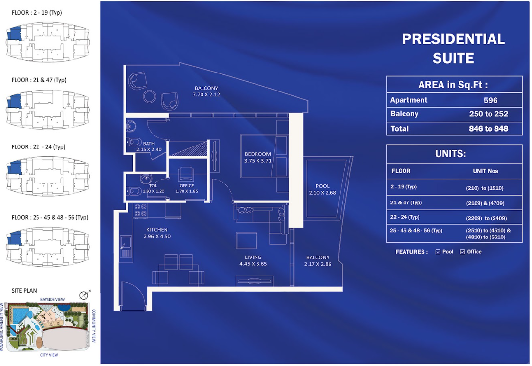 Willkommen in der atemberaubenden 1-Schlafzimmer-Presidential-Suite mit einem Büro in dieser fantastischen Wohnanlage! Diese luxuriöse Immobilie ist perfekt für Familien oder Investoren, die nach dem ultimativen, eleganten Wohnen suchen. Die Suite