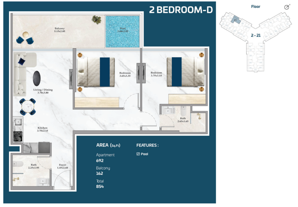Anbieter-ObjektnummerTimez 2BHK APT + Private Pool - DV-8586