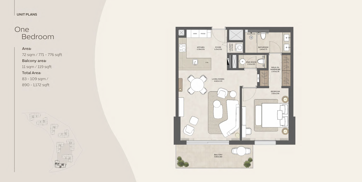 Wenn Sie dieses Apartment mit 1 Schlafzimmer betreten, werden Sie sofort von einer Welt voller Luxus und Komfort empfangen. Die hier angebotenen Fitness- und Wellnesseinrichtungen sind wirklich beeindruckend. Sie können sich im voll ausgestatteten Fitnessraum in Form halten, eine ruhige Yoga-Sitzung im Innen- und Außenbereich genießen oder sich in den Spa-Räumen verwöhnen lassen. Machen Sie einen Spaziergang auf den Wander- und Joggingwegen oder kühlen Sie sich in den Pools ab - darunter ein Infinity-Pool und eine Sonnenterrasse sowie Tauchbecken und -decks.