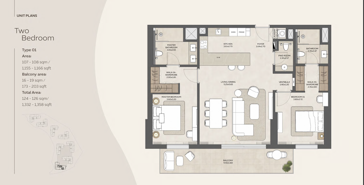 Wenn Sie dieses elegante Apartment mit 2 Schlafzimmern betreten, werden Sie mit einem Gefühl von Luxus und modernem Leben begrüßt. Die Fitness- und Wellness-Einrichtungen bieten Ihnen die Möglichkeit, einen gesunden Lebensstil mit einem voll