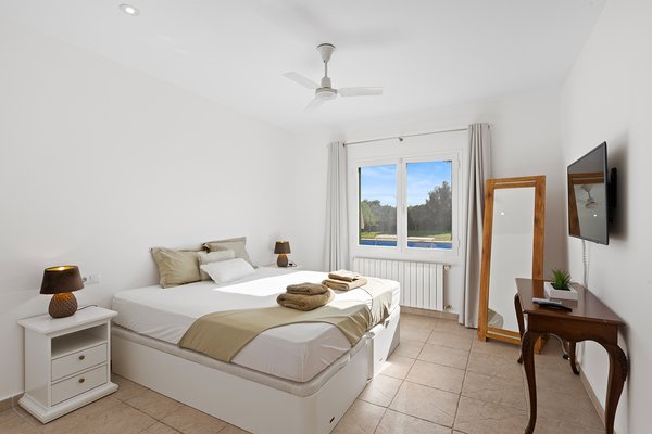 Der weitläufige Garten umgibt das Anwesen und führt von der Terrasse zum großen Pool, der an warmen Tagen für eine willkommene Erfrischung sorgt. Die Pool-Area bietet ausreichend Platz für Sonnenliegen und ist der ideale Ort, um die spanische Sonne in vollen Zügen zu genießen.