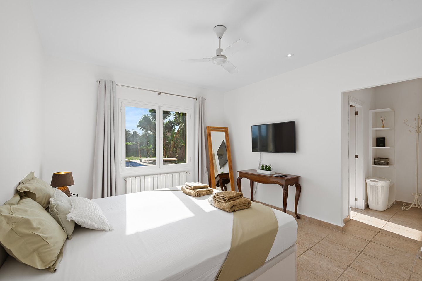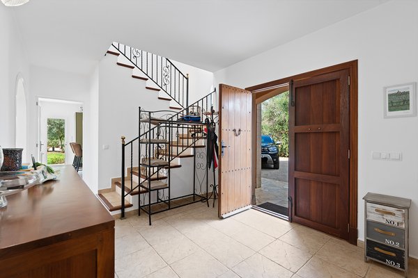 Man betritt das Haus über einen großzügige Eingangsbereich mit überdachter Veranda. Das Erdgeschoss zeichnet sich durch einen einladenden Grundriss aus, der Funktionalität mit typisch spanischem Charme verbindet.