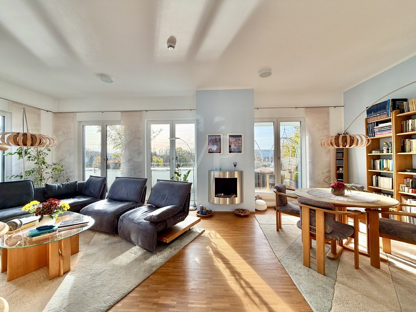 Die Wohnung erstreckt sich über das 2. Obergeschoss und das Dachgeschoss und ist selbstverständlich bequem per Aufzug erreichbar. Mit einer Wohnfläche von ca. 139 m² eröffnet sich ein beeindruckendes Raumgefühl, das einladende Offenheit mit wohliger Privatsphäre verbindet. Edles Eichenparkett, eine moderne Fußbodenheizung und bodentiefe Fenster mit schattenspendenden Jalousien schaffen eine Atmosphäre von zeitloser Eleganz und wohnlicher Wärme.