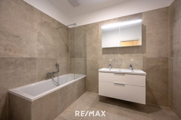 - Modernes Badezimmer mit Badewanne, LED-Spiegelschrank und Markenarmaturen