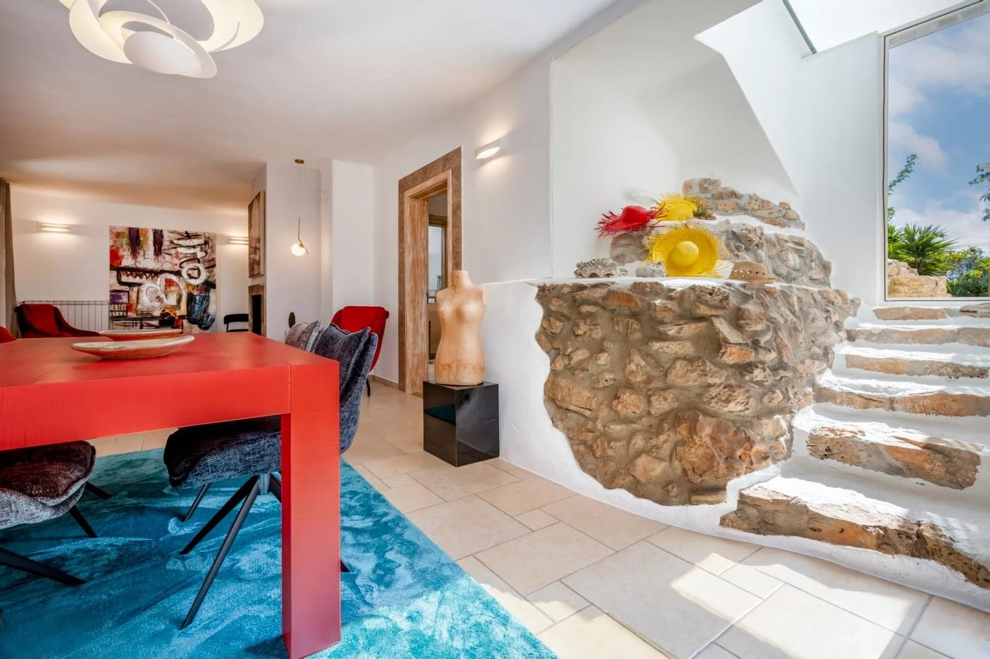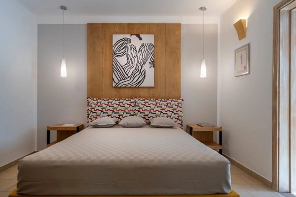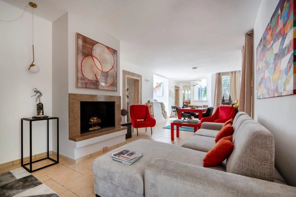 Das Innere der Villa ist mit sorgfältig ausgewählten Kunstwerken ausgestattet: Bronzeskulpturen auf ägyptischem Marmor und Schmiedeeisen, Reproduktionen von Werken Dorazios und Hoppers von Maria Sidoli, zeitgenössische Gemälde, lackierte Vasen aus aller Welt. Jedes Zimmer strahlt Eleganz und feine Exklusivität aus.