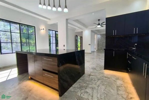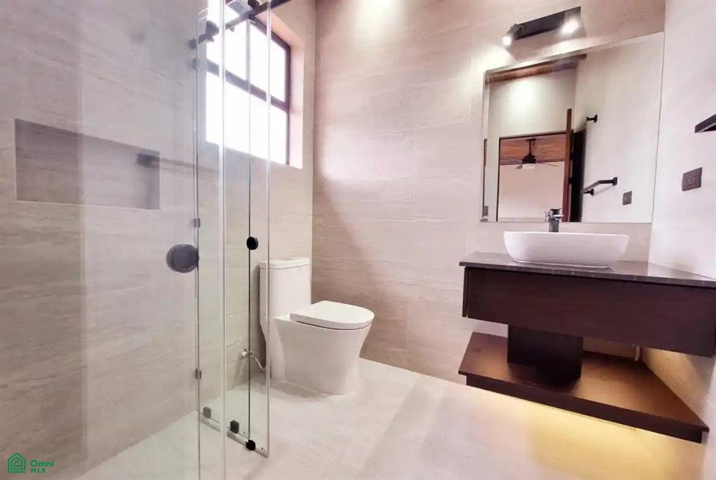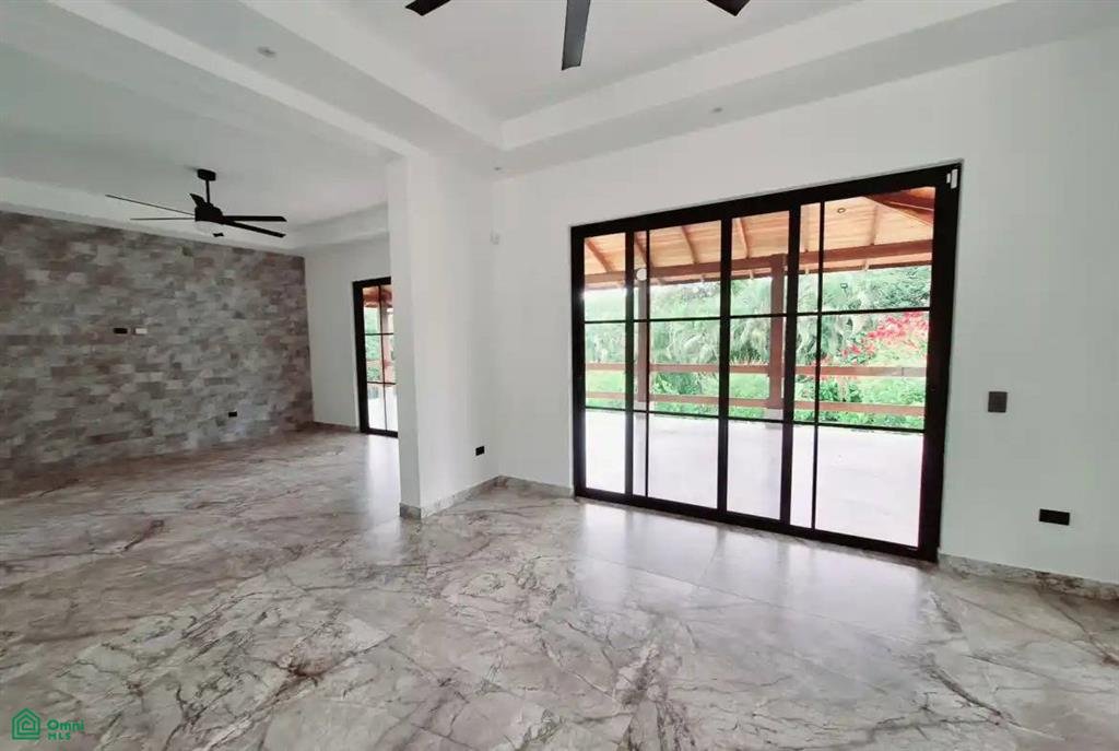 Der geräumige, offene Grundriss verbindet mühelos den Wohn- und Essbereich, ist in natürliches Licht getaucht und öffnet sich durch hohe Glastüren zu einer weitläufigen überdachten Veranda. Perfekt für Unterhaltung oder ruhige Entspannung, schafft dieses Design einen harmonischen Innen-Außen-Fluss, der die umgebende tropische Schönheit zelebriert.