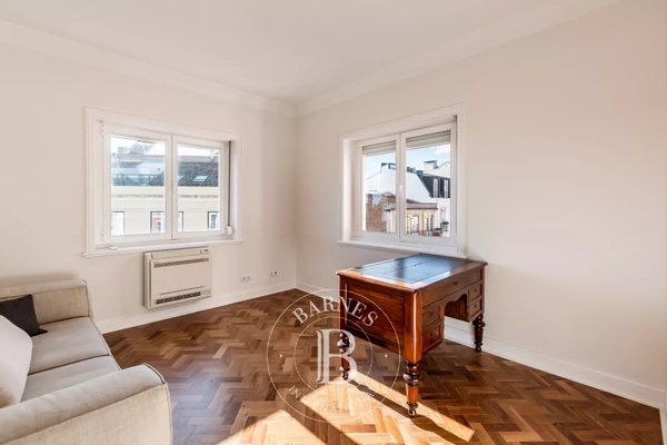 Wohnung mit 3 Schlafzimmern und Suite, neben der Basílica da Estrela im Herzen von Lapa, Lissabon. Die Master-Suite verfügt über ein zusätzliches Zimmer, perfekt für ein Büro oder Umkleidezimmer. Sehr hell, es verfügt über ein Wohnzimmer mit Kamin und Zugang zum Hauptbalkon, einen separaten Raum, der als Speise- oder Fernsehraum genutzt werden kann, sowie einen eigenen Hauswirtschaftsraum neben der Küche. Das Gebäude verfügt über einen Concierge und eine große Dachterrasse mit atemberaubendem Blick über die Stadt und den Fluss Tajo. Beinhaltet 2 Parkplätze.