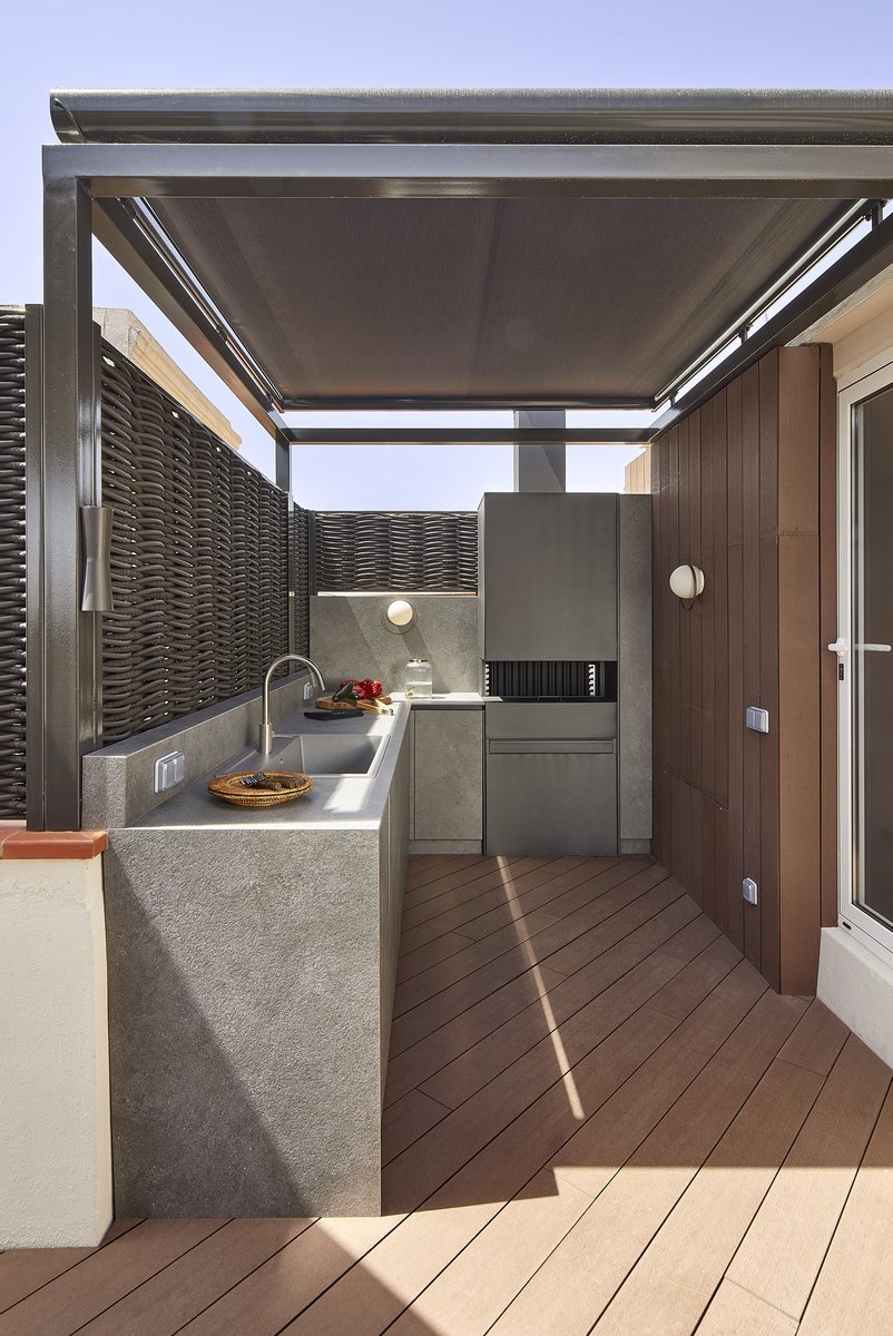 Die Terrasse, die eine außergewöhnliche Ausrichtung bietet, bietet einen echten urbanen Wellness-Retreat: eine Sommerküche, einen Außen-Essbereich, eine Chill-out-Zone und einen privaten Pool – perfekt, um das mediterrane Klima das ganze Jahr über zu genießen.